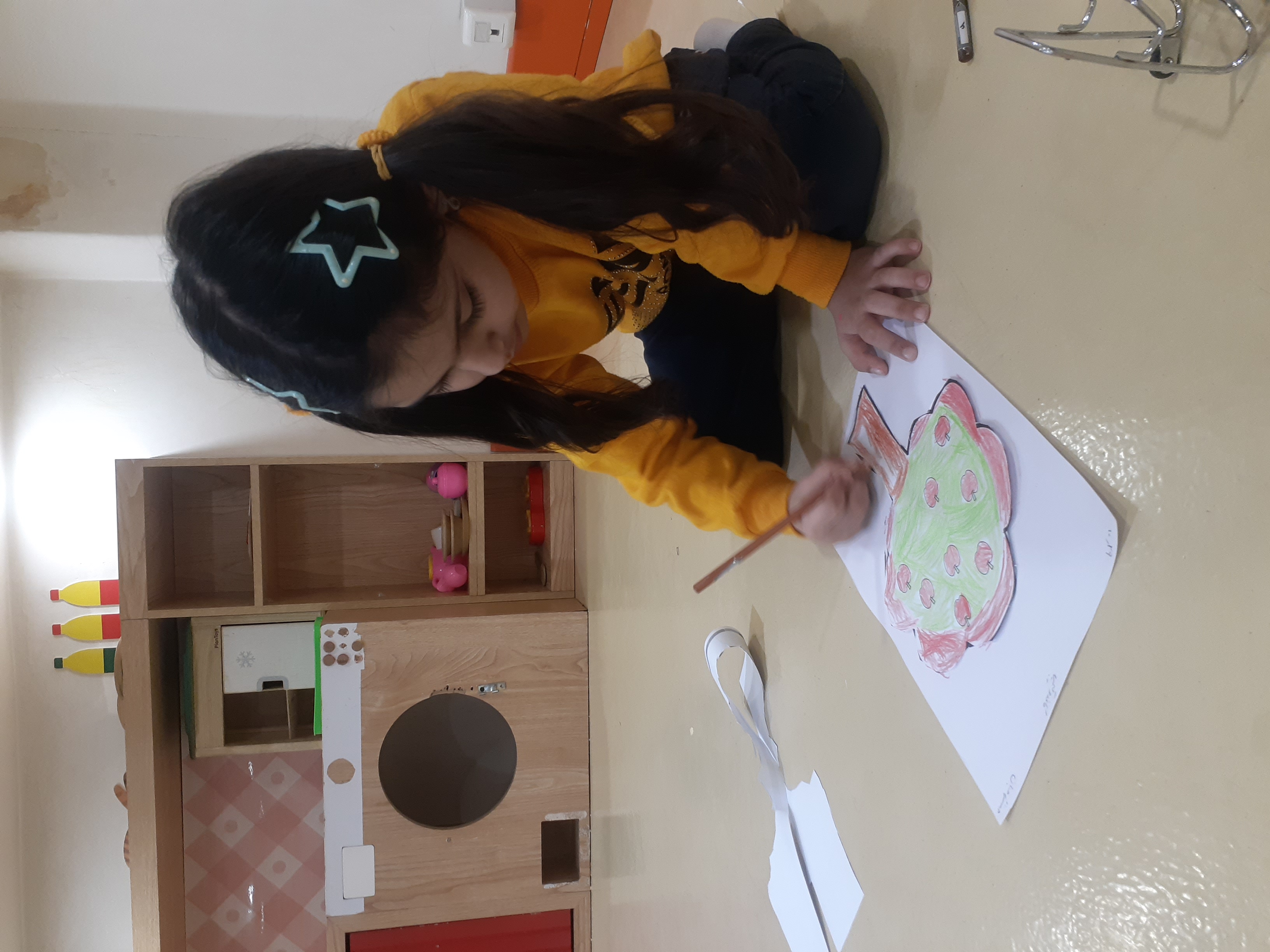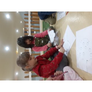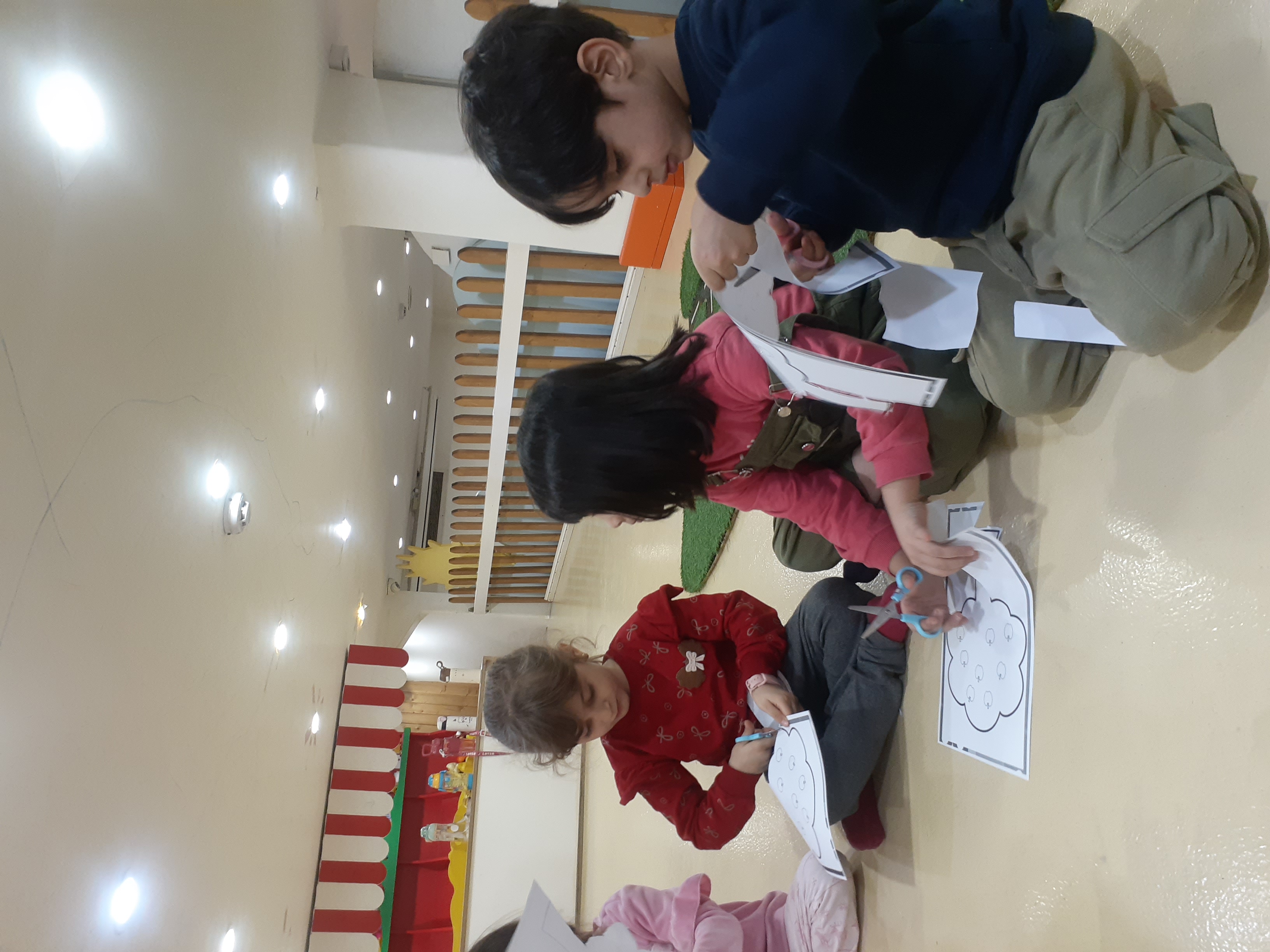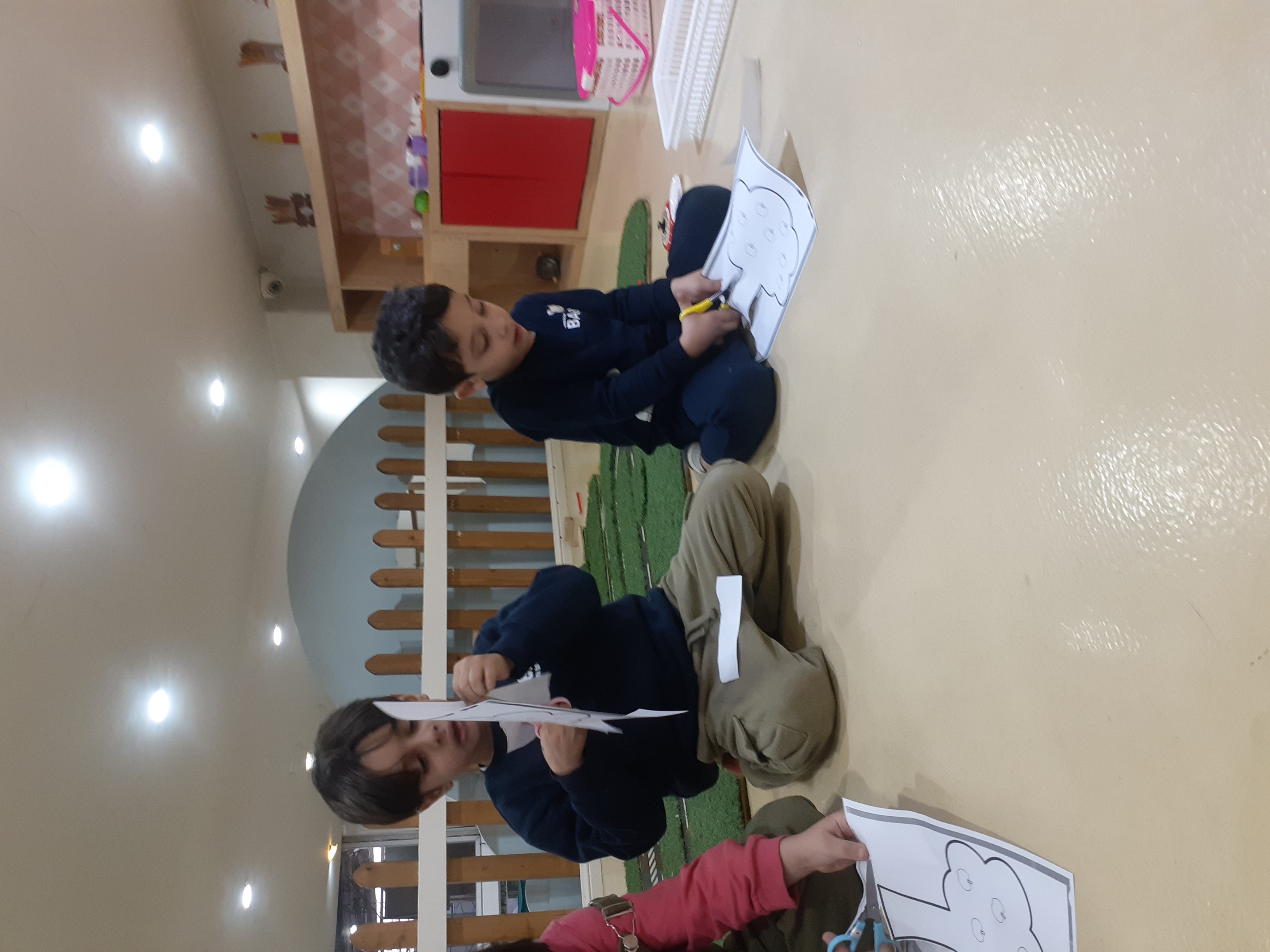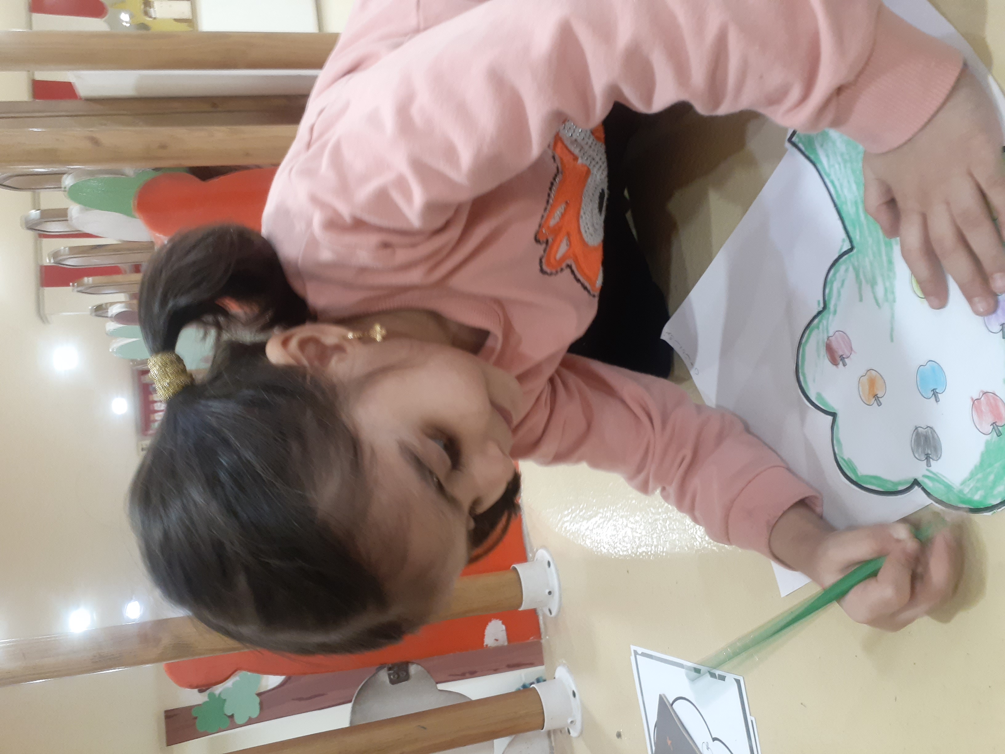 پر انرژی به کلاس مون رفتیم و فعالیت کاغذ و قیچی مون رو انجام دادیم ،قیچی کردن دور حاشیه های درخت و چسباندن آن روی برگه و رنگ آمیزی 😍