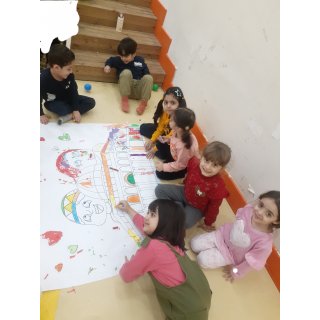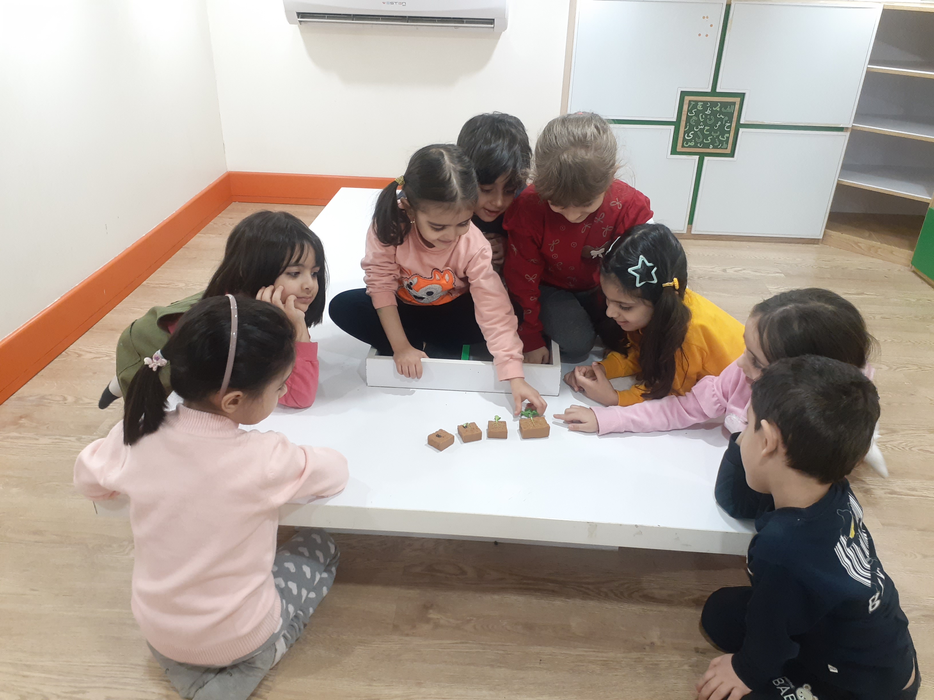 با بچه های گلمون بعد از برنامه صبحگاه و خوردن صبحانه (پنیر ،گوجه ،چای) ، پر انرژی به کلاس مون رفتیم و فعالیت هامون رو شروع کردیم:
