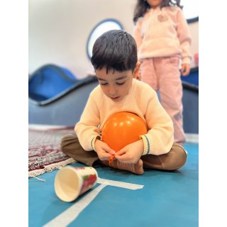 ایستگاه بعدیمون بادکنک های بازیگوشه که هم بادکنک بازی کردیم هم یه مسیری رو با کمک باد بادکنک لیوان ها رو جاو بردیم🎈🎈🎈