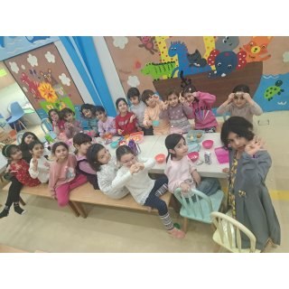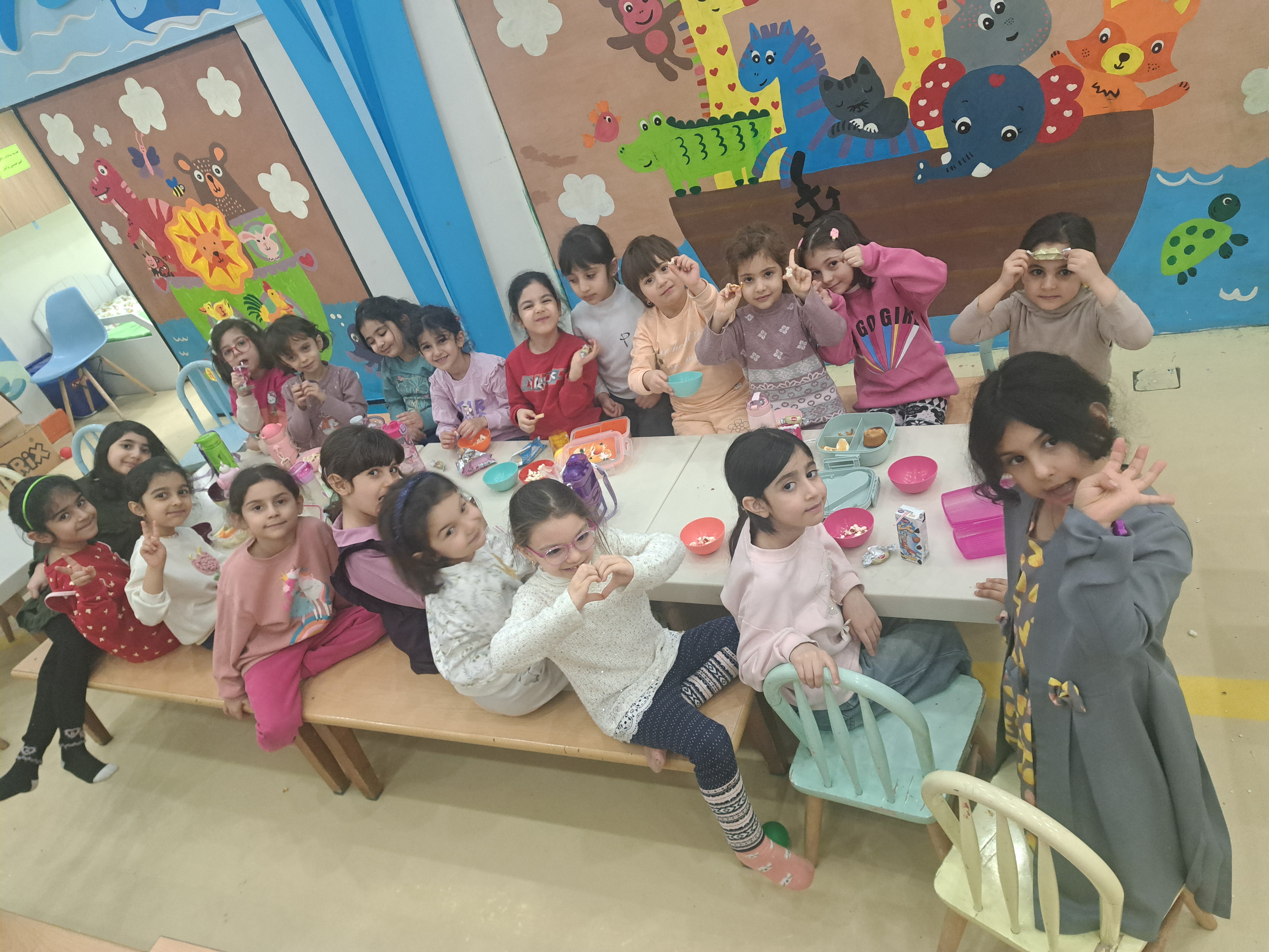 بعد به برنامه صبحگاهی خاله هانیه عزیز رفتیم شعر خواندیم و کلی فعالیت انجام دادیم برای اینکه انرژی کافی برای شروع کلاس ها داشته باشیم به کلاس خاله فائزه مهربون رفتیم و کلی نرمش انجام دادیم سپس همگی باهم دوزنده های کوچکی شدیم و دوخت های جالب و قشنگی انجام دادیم، بعد از کلاس میان وعده های خوشمزمون که خیلی دوستش داریم پفیلا بود میل کردیم سپس به کلاس خاله الهه عزیز رفتیم کیک درست کردیم و کلی بازی کردیم بعد به لی لی پوتی رفتیم کتاب داستان جالب و بامزه داگلی بغلی عیدت مبارک خواندیم و همگی باهم بازی کردیم بعد باهم دیگر کلاس مسی پلی رفتیم و با ترکیب رنگ ها آشنا شدیم وسپس کوشانامه های دست ورزی انجام دادیم ودر آخر داستان تعریف کردیم و لگو بازی کردیم