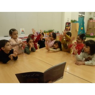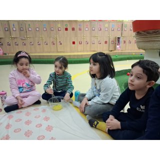 اول باهمدیگه حضور و غیاب کردیم و راجع به آب و هوا صحبت کردیم و درباره موضوع هفته زمستان حرف زدیم و بازی کردیم😁❄️❄️