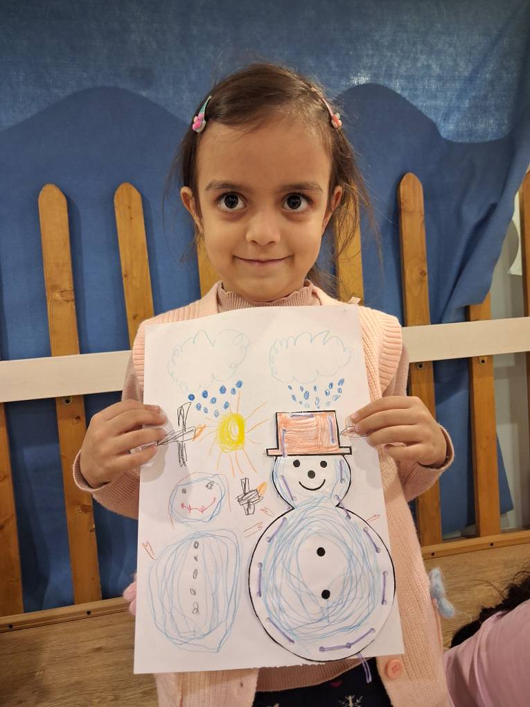 اول باهمدیگه حضور و غیاب کردیم و راجع به آب و هوا صحبت کردیم و درباره موضوع هفته زمستان حرف زدیم و بازی کردیم😁❄️❄️