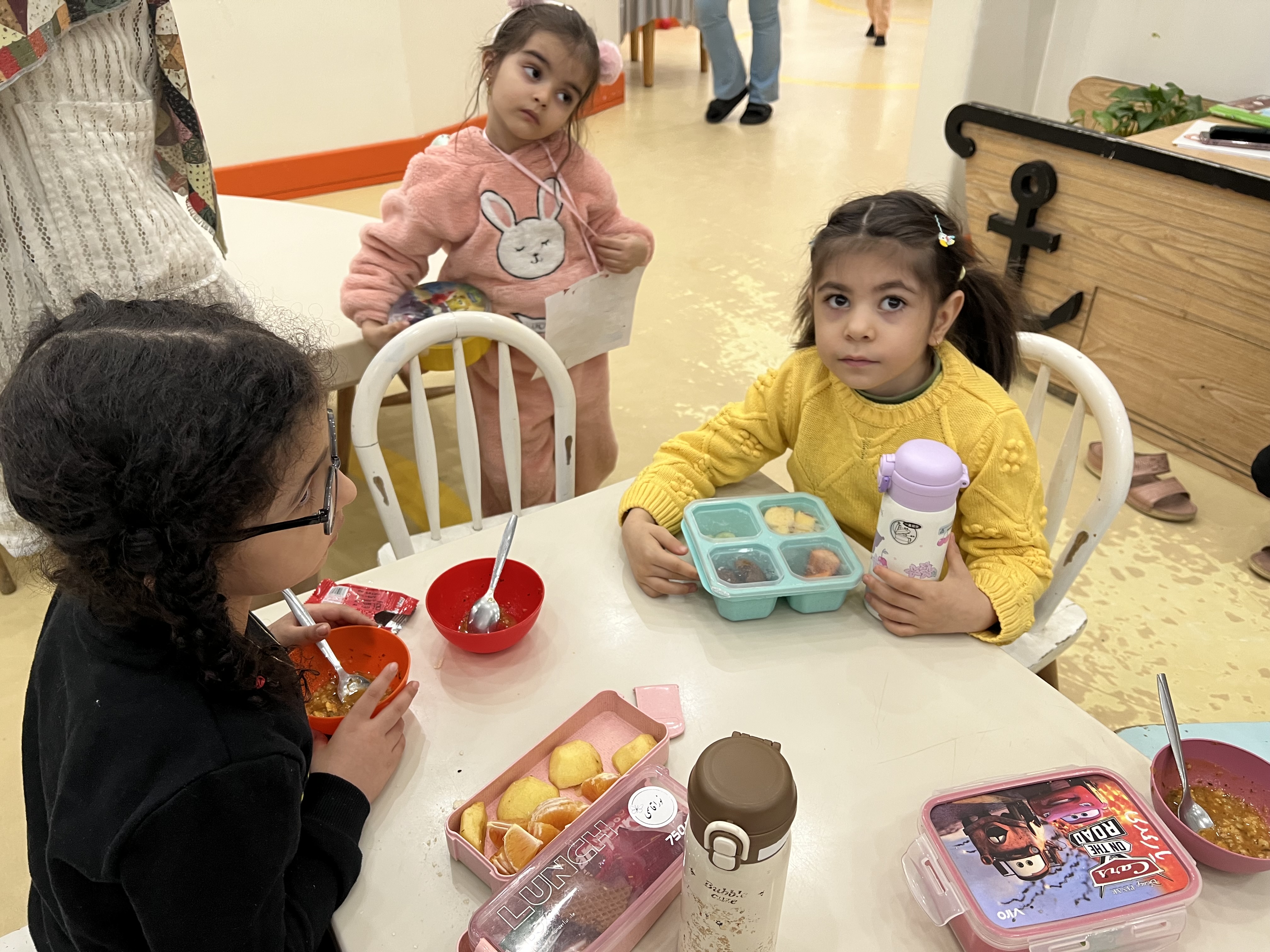 بعد از صرف میان وعده، سوپ سبزیجات گرم وخوشمزه🍵و خوراکی و میوه ای که همراه داشتند