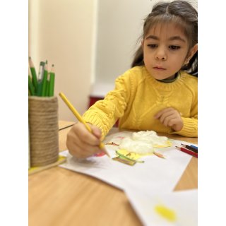 کلاس حلقه دوستی دور همدیگه بعد از حضور و غیاب و صحبت از آب و هوا ❄️🌨️☃️و تقویم روز به ارائه پروژه هفتمون، فصل زمستان پرداختیم🩵