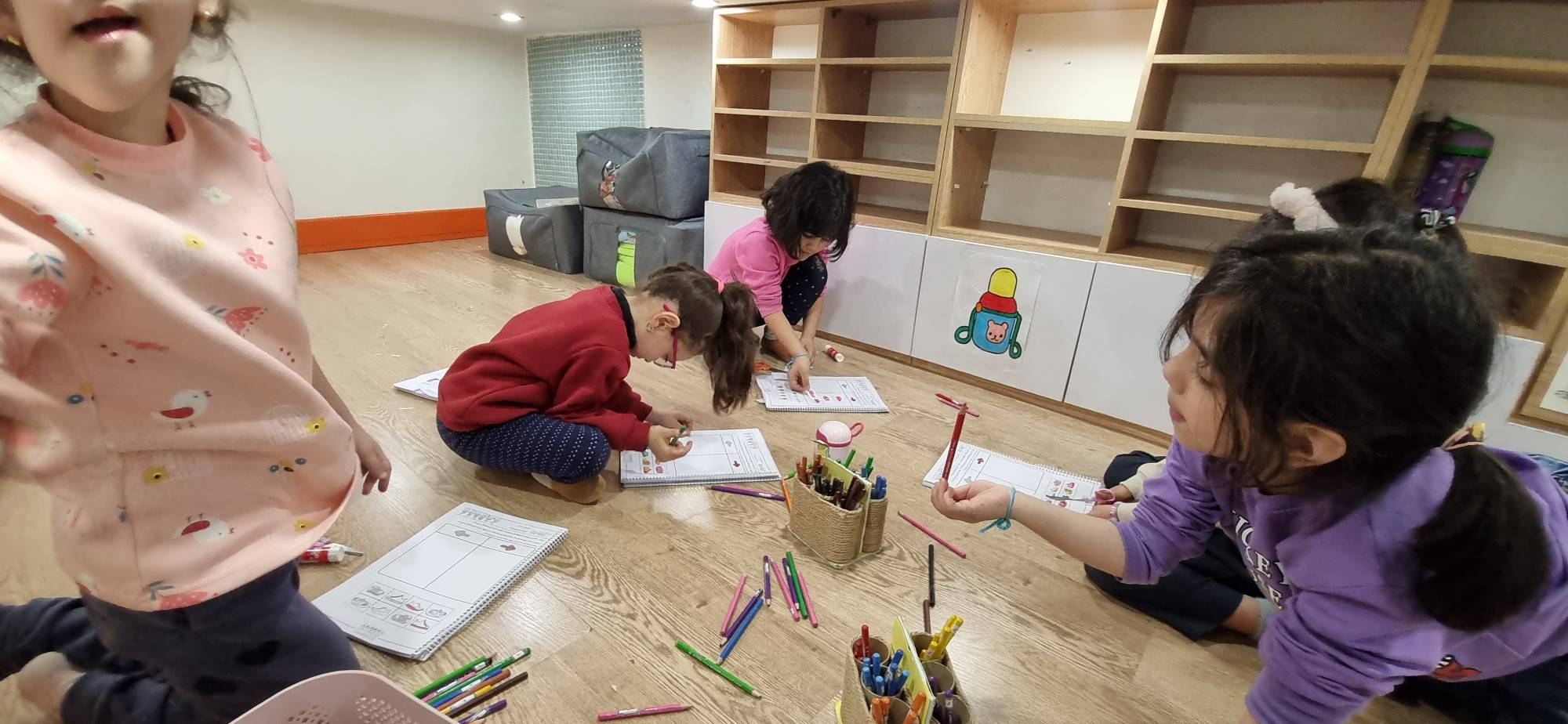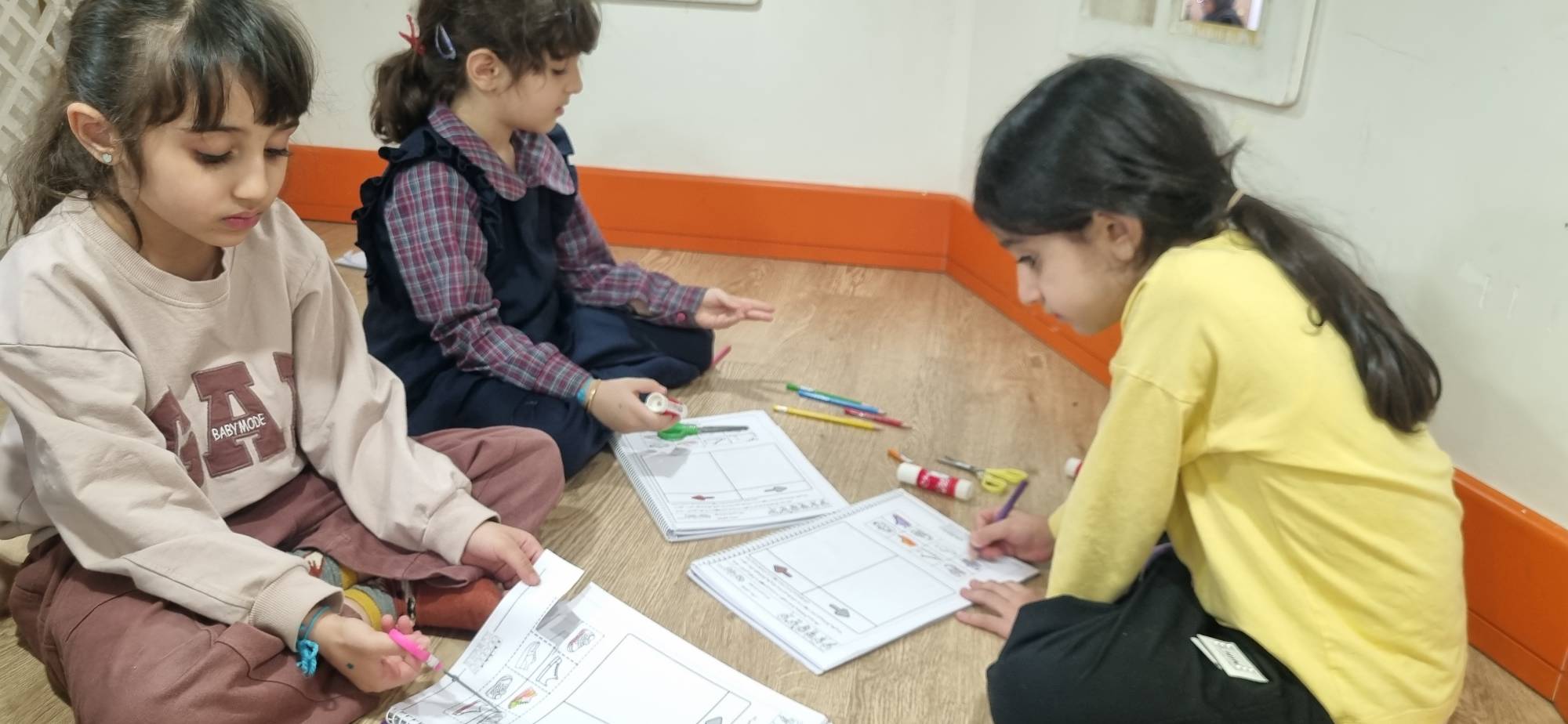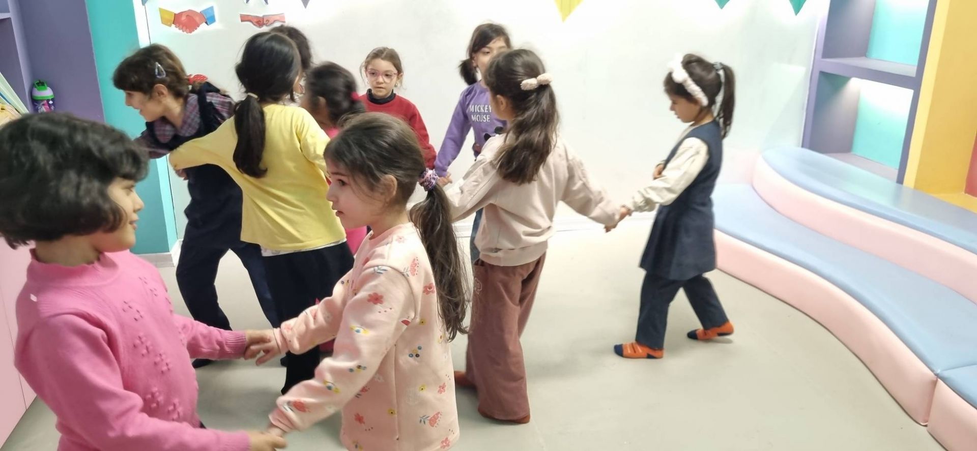 امروز دست چپ و راستمون رو باهم یادگرفتیم و دست راستمون رو با نخ آبی بستیم تا هفته اینده یادمون بمونه که راست کجا بود🖐