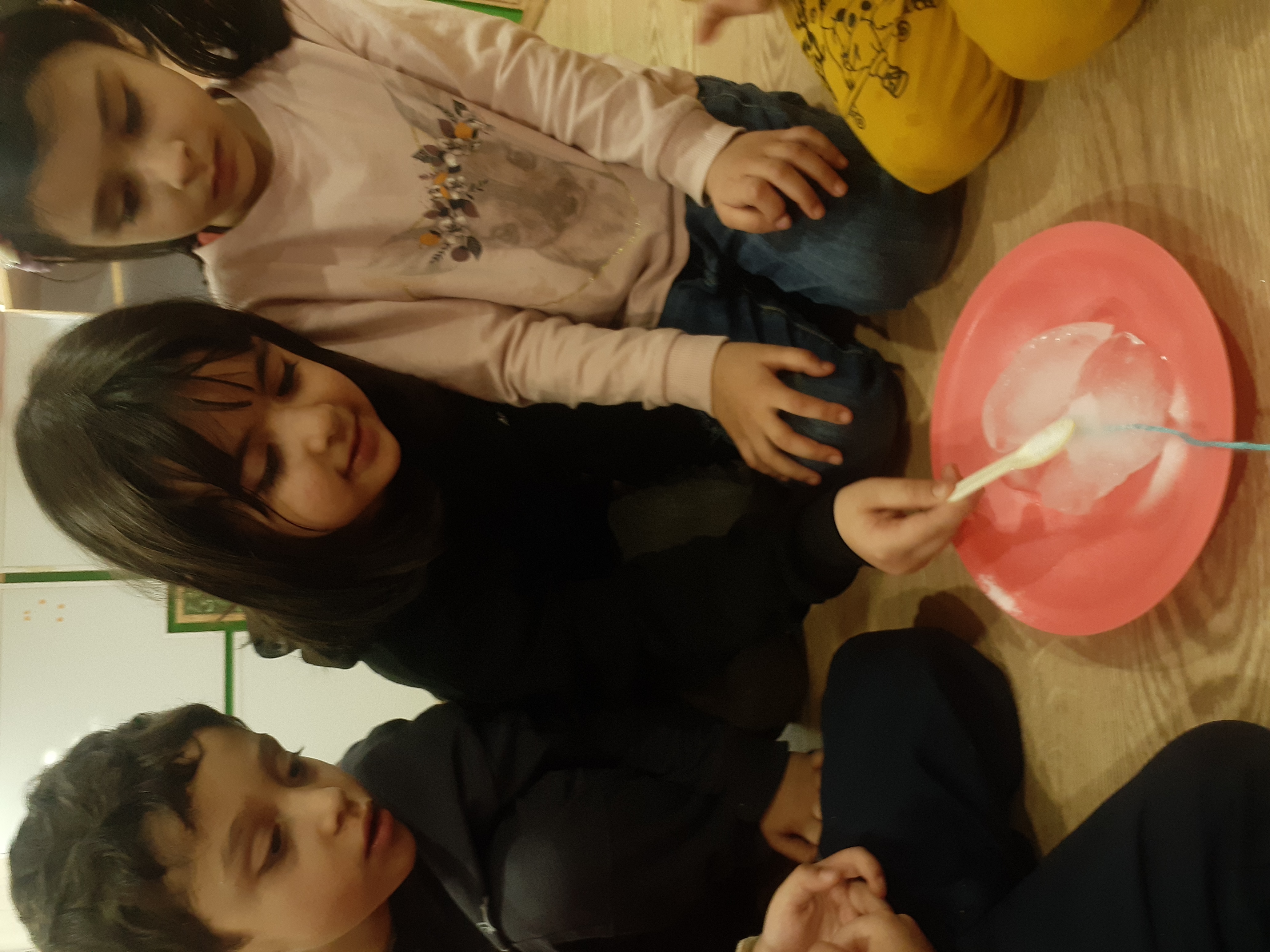 علوم : آزمایشی با (یخ ،کاموا،نمک) انجام دادیم .برگی از کوشانامه ی علوم رو حل کردیم .