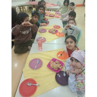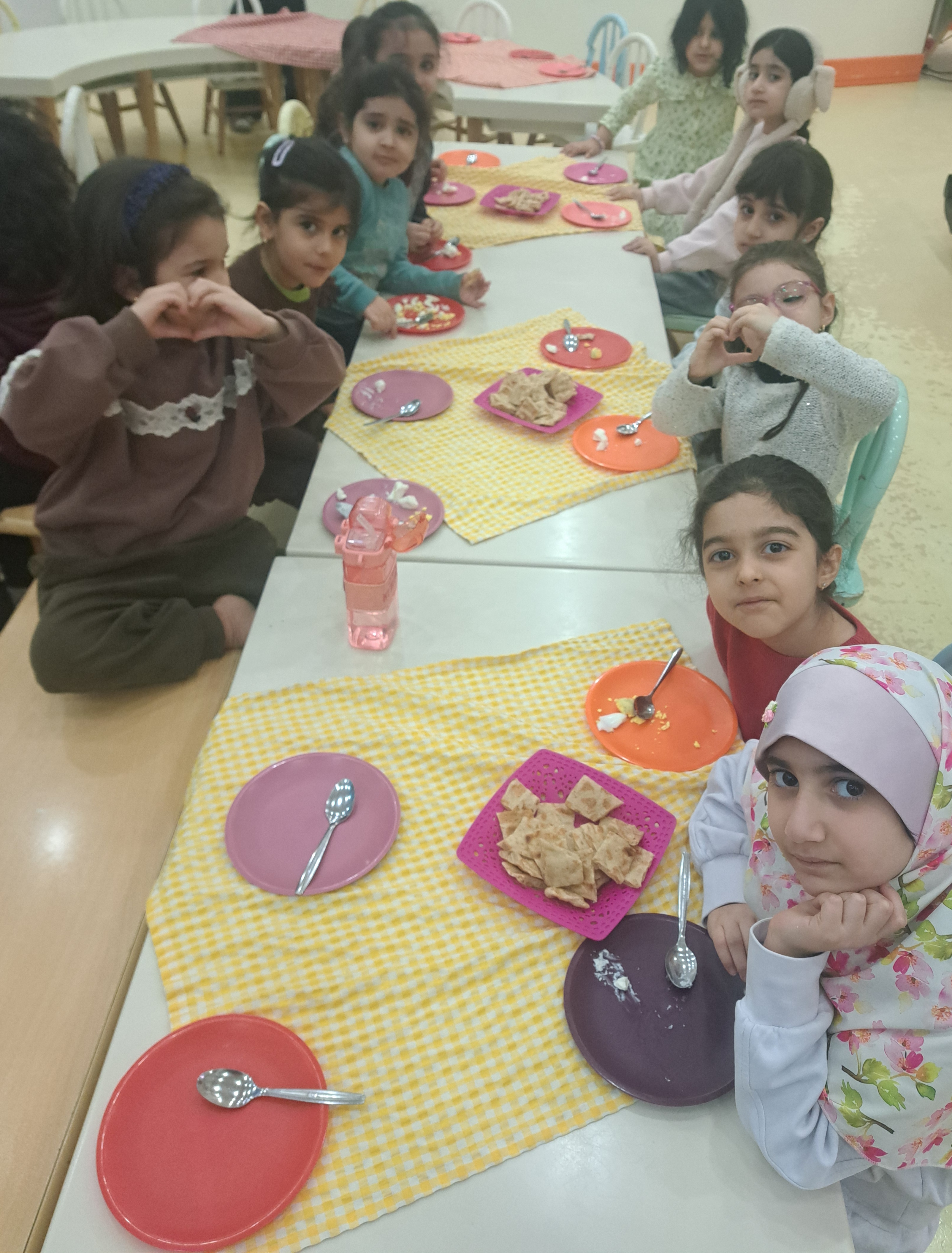 چون صبح زیبامون برای اینکه انرژی کافی برای انجام فعالیت های زیبامون داشته باشیم صبحانه مقوی نان و تخم مرغ آبپز میل کردیم🥚 و برای ادامه انرژیمون گفتیم چیکار کنیم تصمیم گرفتیم به کلاس ورزش خاله فائزه عزیز برویم و کلی نرمش کردیم👟🏐 و لذت بردیم سپس دوزنده های کوچکی شدیم فعالیت دوخت و دوز انجام دادیم🧵🪡 بعد نوبت میان وعدمون شد و میان وعده های خوشمزمون میل کردیم و پیش به سوی بازی کردن رفتیم و کلی بازی کردیم بعد دیدیم زمان کلاس خاله الهه عزیز رسیده ، وپیش به سوی کلاس جنات رفتیم و آیه زیبا فلینظر الانسان الی طعامه خواندیم و درباره طعام نقاشی کردیم🍝 و بعد از کلاس به لی لی پوتی رفتیم و قصه زیبا داگلی توسط خاله زهره خوانده شد و بازی کردیم📚 و بعد وارد دنیای رنگ ها شدیم و با دستان کوچولومان اثر هنری زیبا خلق کردیم👩🎨