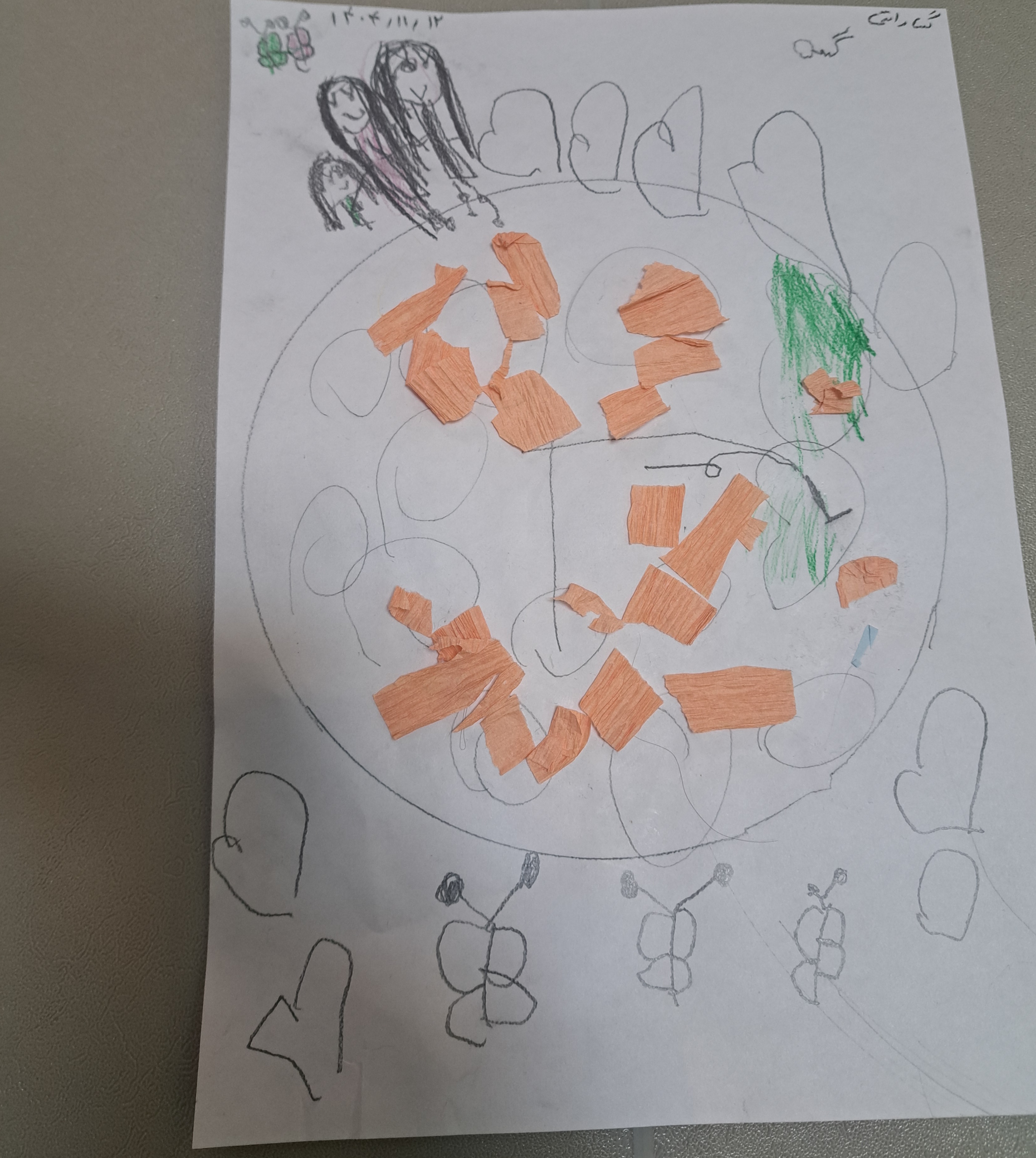 دیدیم ساعت ناهار رسیده و ناهار خوشمزه که مادرهای مهربانمون برامون آماده کرده بود میل کردیم🍲 سپس کوشانامه های قشنگمون رنگ آمیزی کردیم و در آخر با استفاده از دومینو های جذاب مون شهربازی های بامزه خلق کردیم
