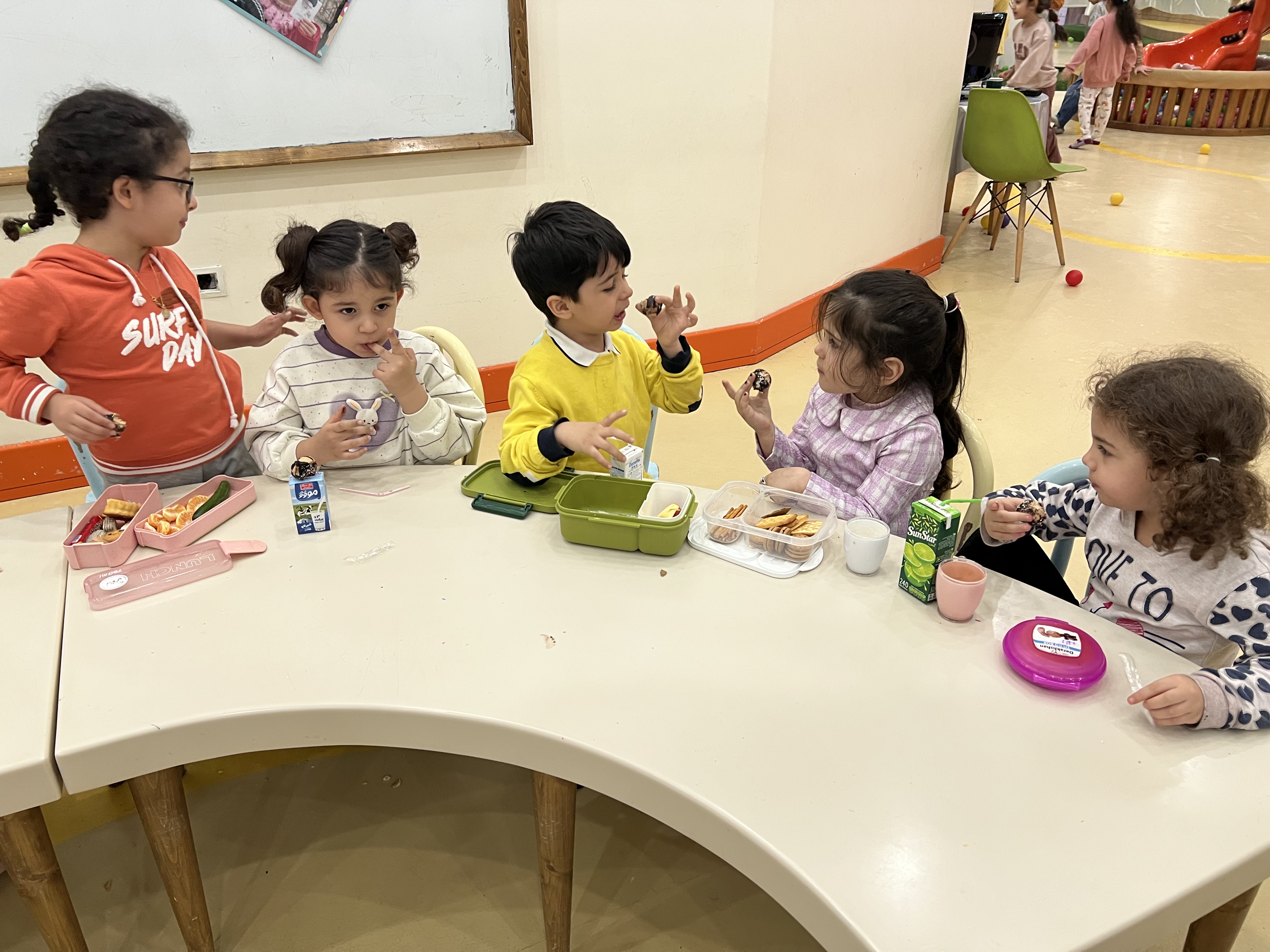 حالا به وقت میان وعده، پاپس کیک های دست پخت خودشون آماده شده بود به همراه شیر و میوه ها و خوراکی هاشون نوش جان کردن🥛🍫🍪🧃