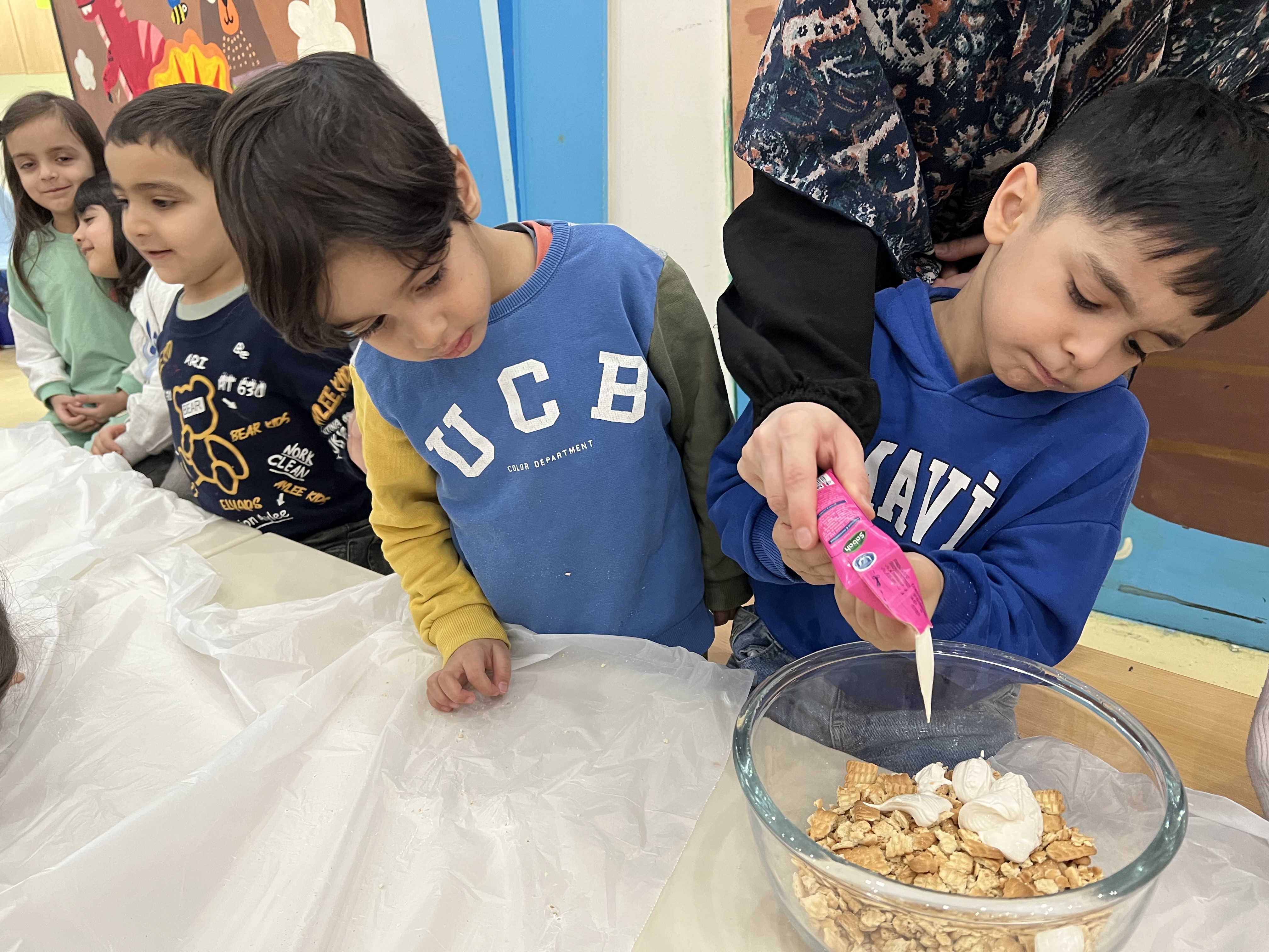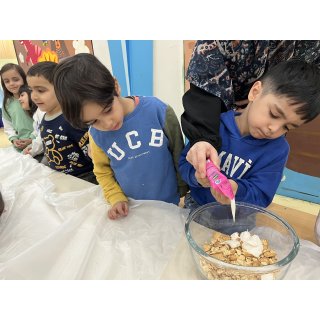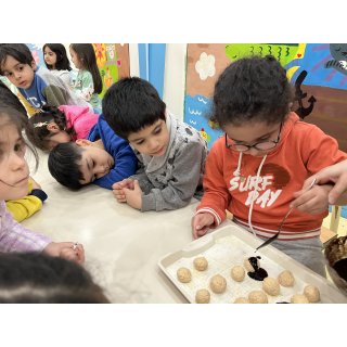 کلاس اول، سرآشپز کوچولوها، 👩🏻🍳بعد از شستن دستها، شروع به تهیه ی پاپس کیک های 🧆😋خوشمزه و جذاب کردن