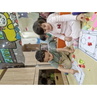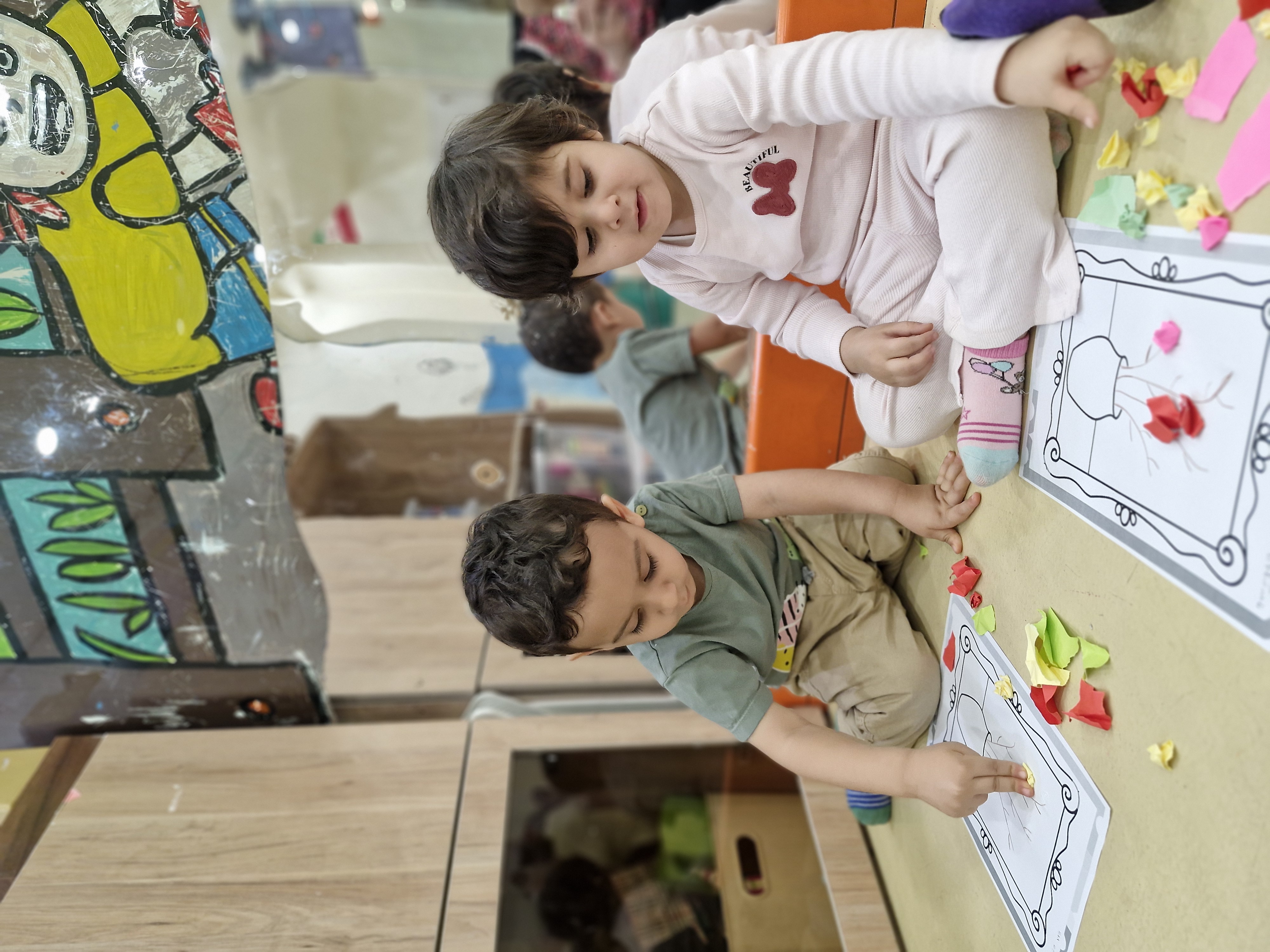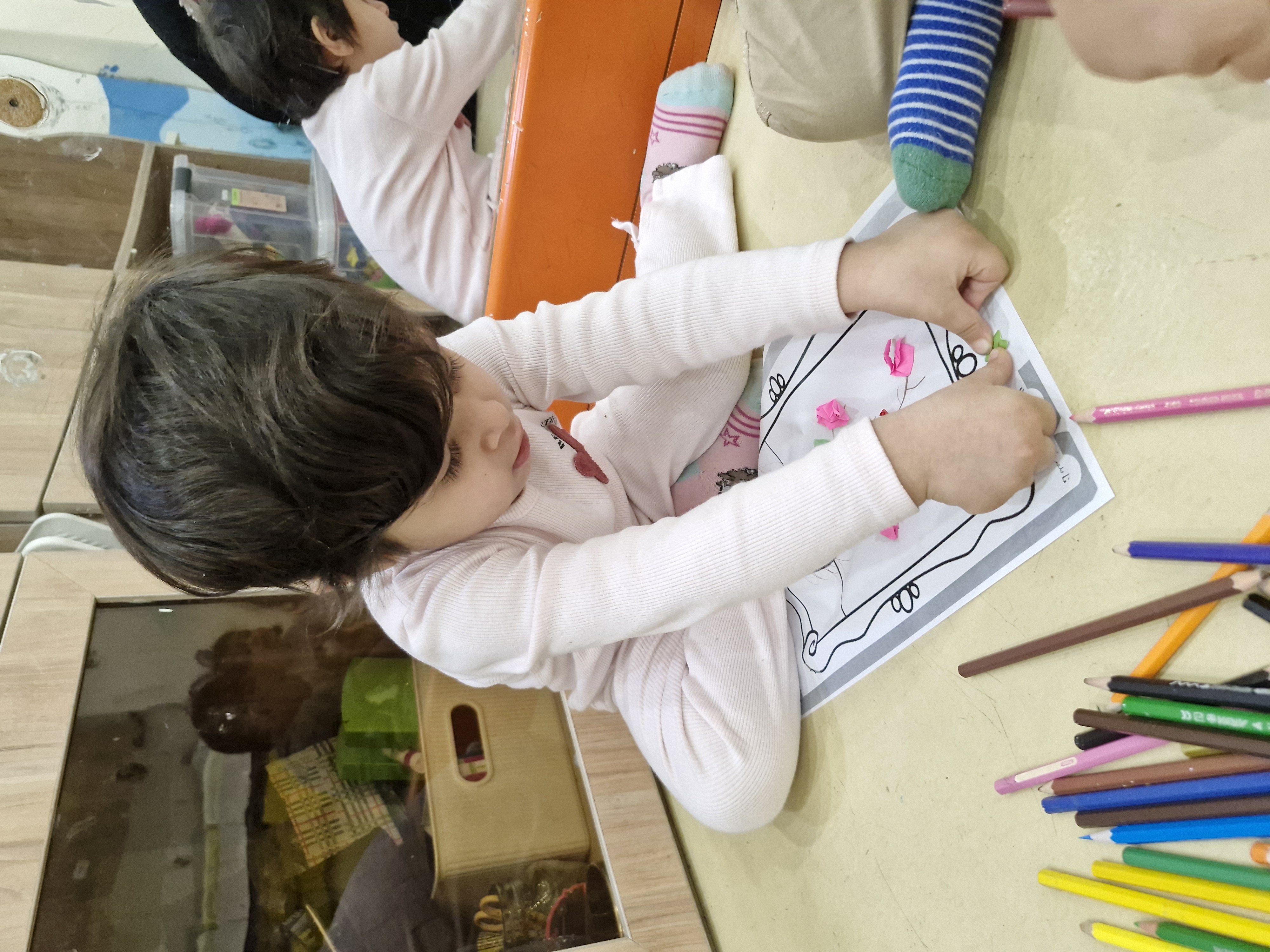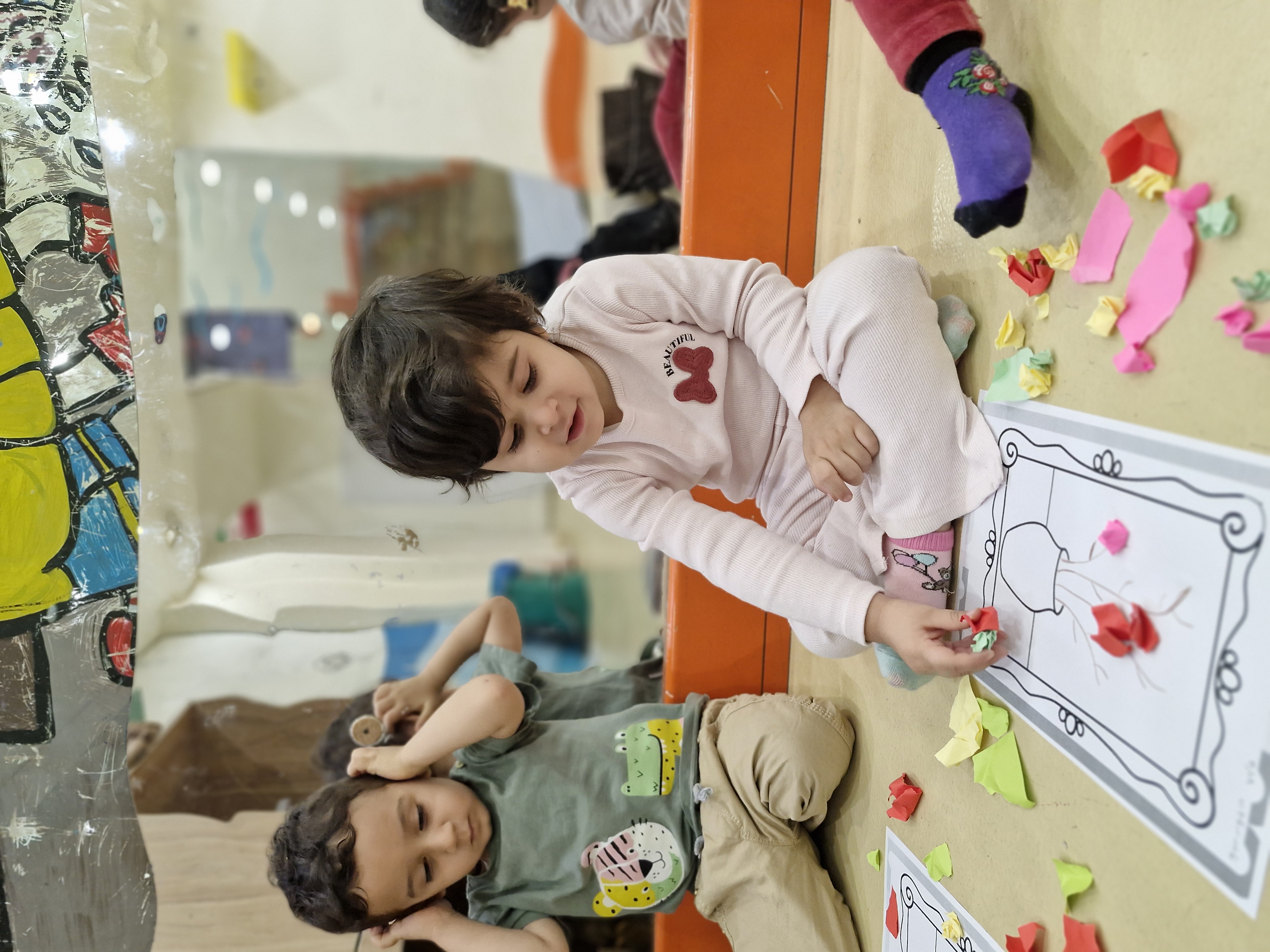 بعدش فعالیت کلاژ داشتیم باهم کاردستی گلدان با شکوفه های رنگارنگ درست کردیم.🪴🌺