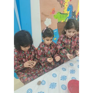 سپس سفالگر های کوچک شدیم و با سفال شکل های قشنگی درست کردیم وبعد میان وعده های خوشمزمون که ژله بود میل کردیم