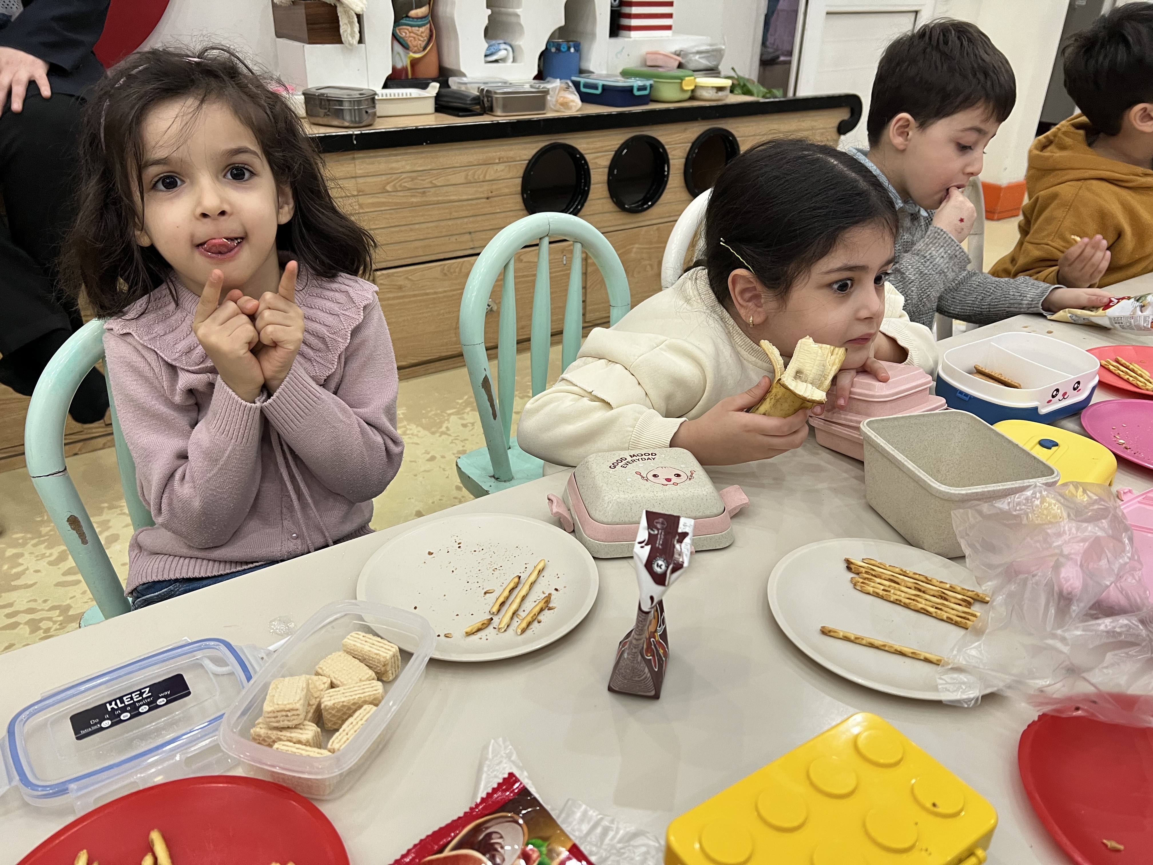 به وقت میان وعده،چوب شور و میوه ها و خوراکی هاشون رو میل کردن🍡🍫🧃