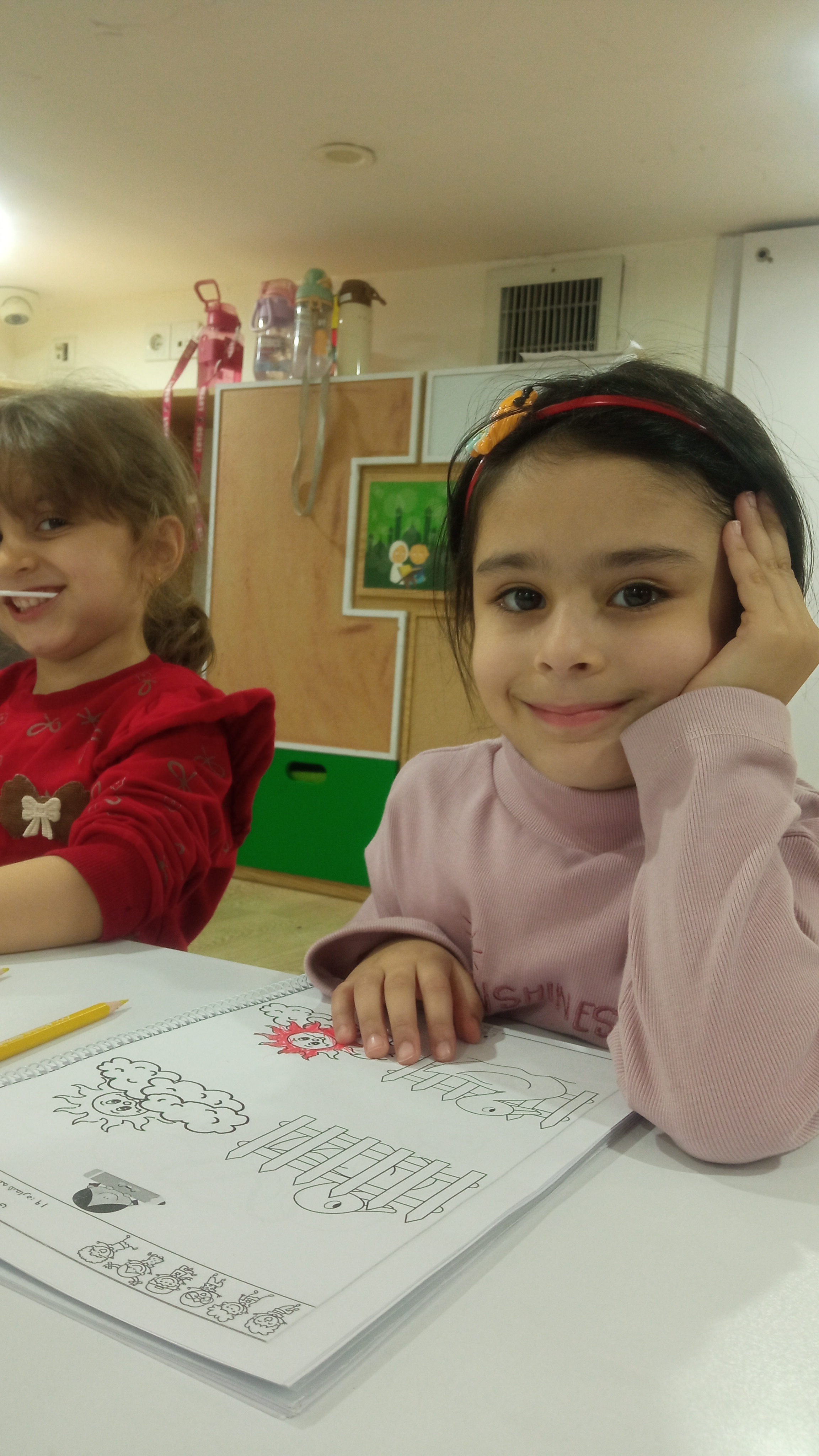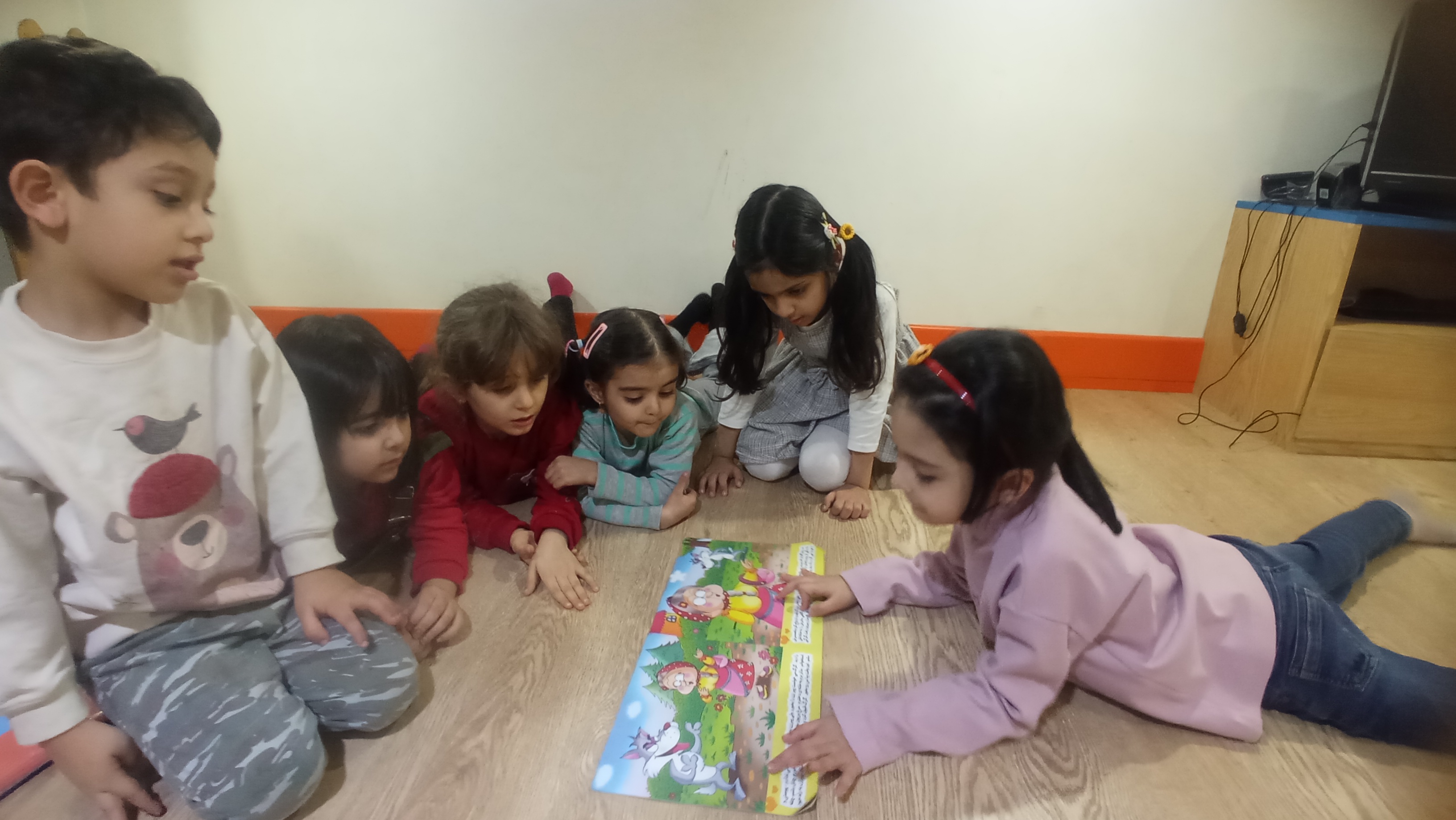رفتیم کلاس و اول حضور و غیاب کردیم ،راجع به آب و هوا صحبت کردیم و راجع به کشورمون ایران صحبت کردیم و دوستمون فاطمه برامون قصه خوند😍