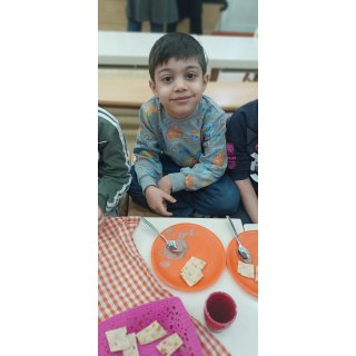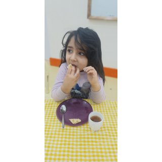 بعد هم رفتیم سراغ میان وعده خوشمزه یعنی پفیلا😍که همگی خیلی دوست داشتیم ،نوش جان کردیم و رفتیم سراغ کلاس بعدی یعنی کلاس دست های خلاق که نقشه ایران رو از صفحه بریدیم و کلی تزیین کردیم.