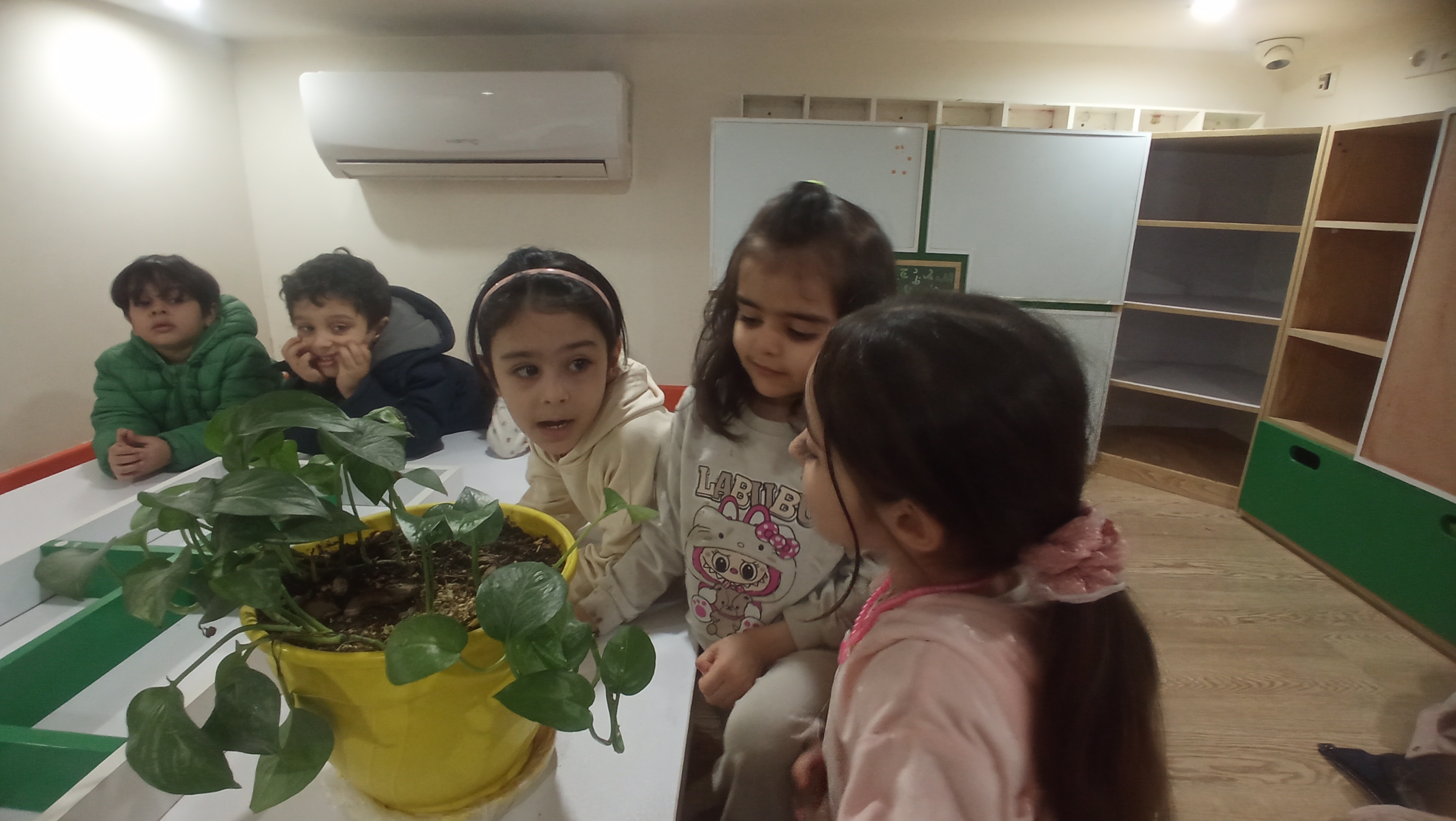 گحضور و غیاب کردیم درباره تقویم صحبت کردیم و بعد درباره موضوع این هفته گیاه صحبت کردیم و یادگرفتیم گیاه ها هم مثل ما آدم ها زنده هستند و صدای مارو میشنون😁