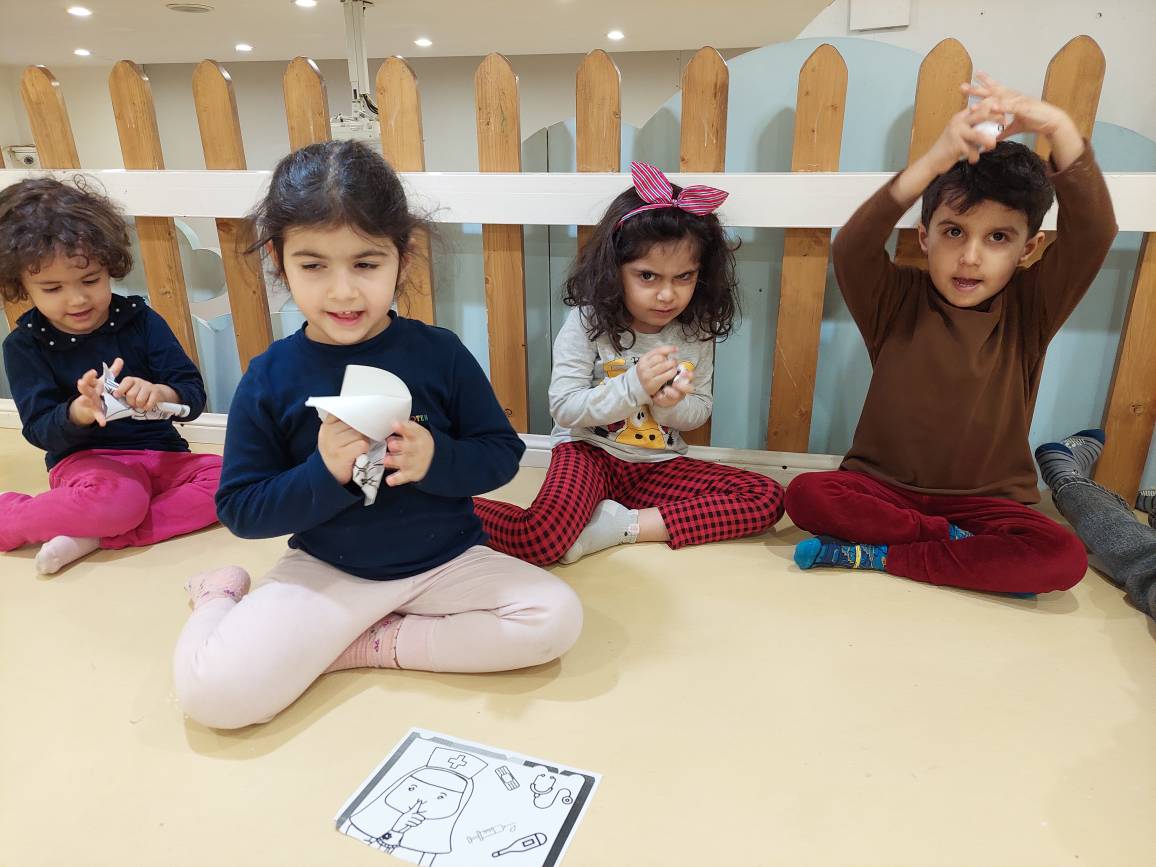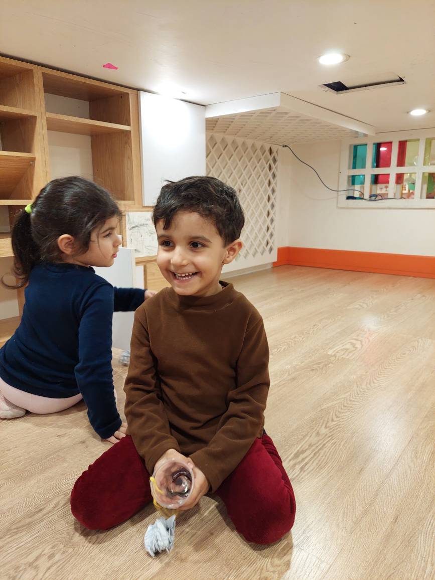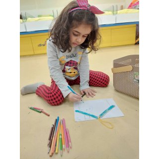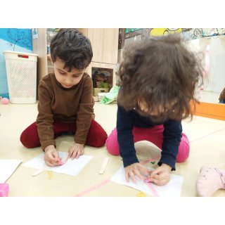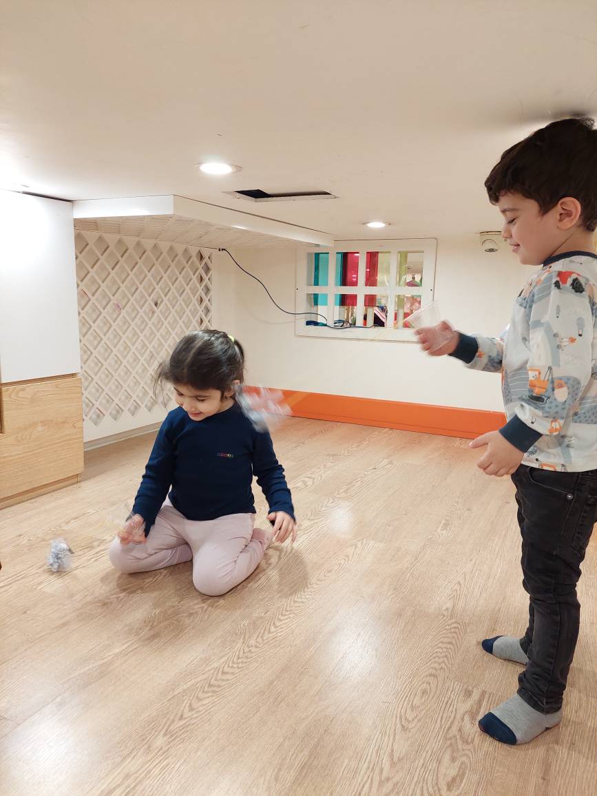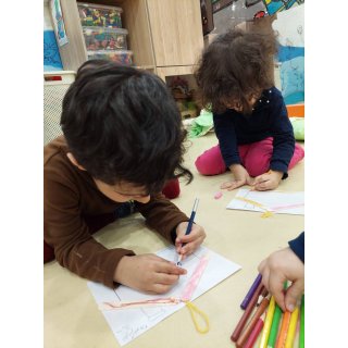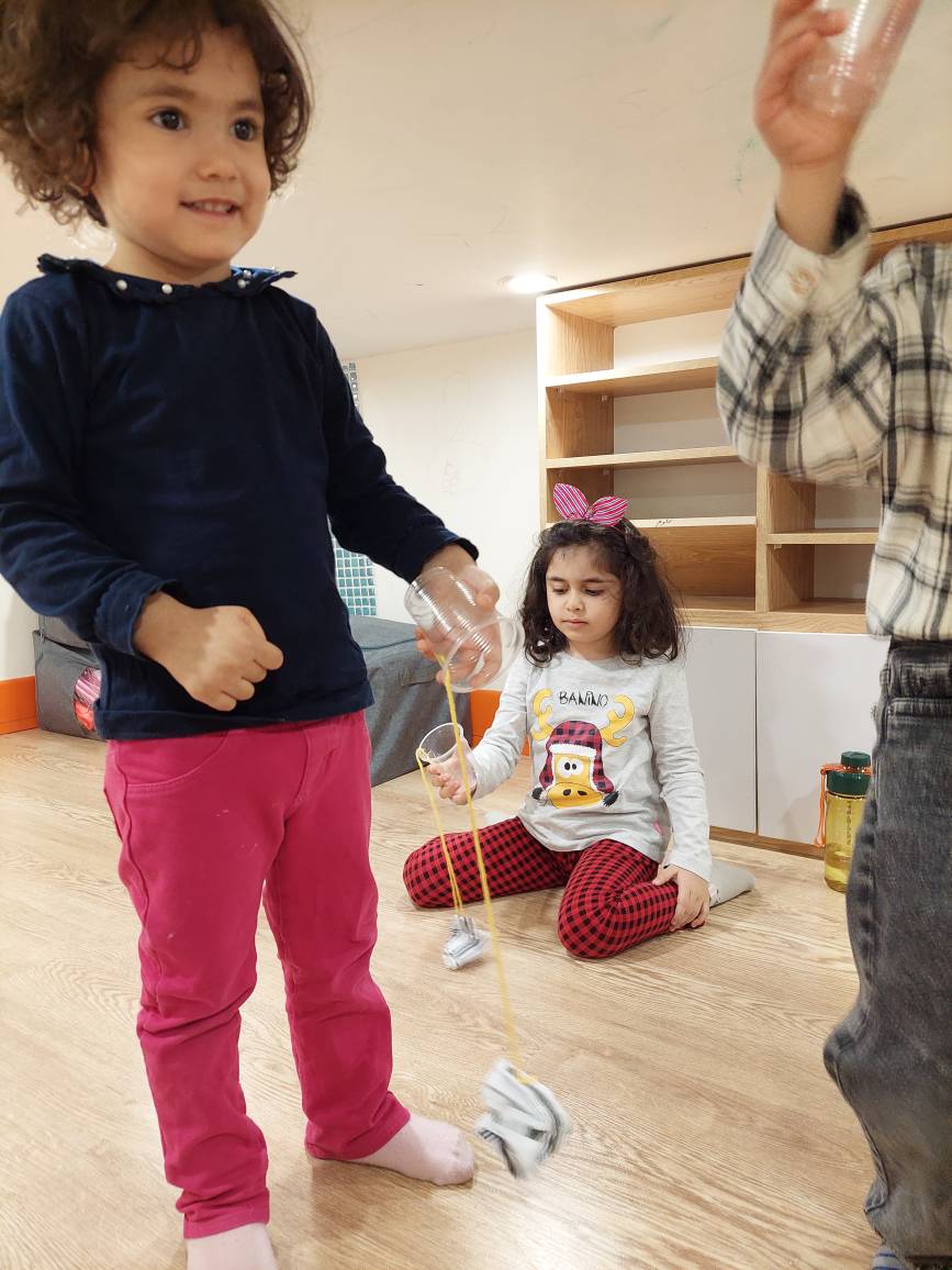 ابتدا یک کاغذ رو مچاله کردیم بعد به وسیله کاموا بیه لیوان متصل کردیم سپس سعی کردیم کاغذ مچاله شده رو داخل لیوان بیندازیم😍😍