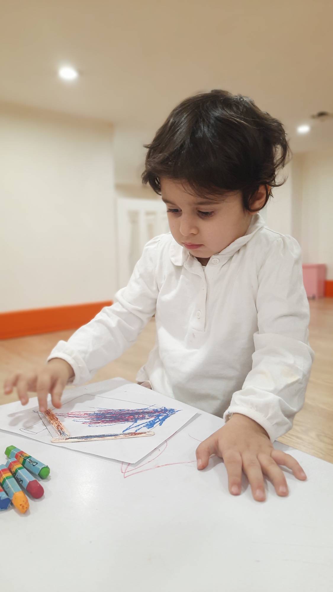 بعدش کاردستی خانواده داشتیم با بچه ها درباره خانواده صحبت کردیم بعد اعضای خانواده رو نقاشی کردیم و بعدش قاب عکس درست کردیم.🖼😉