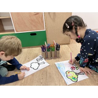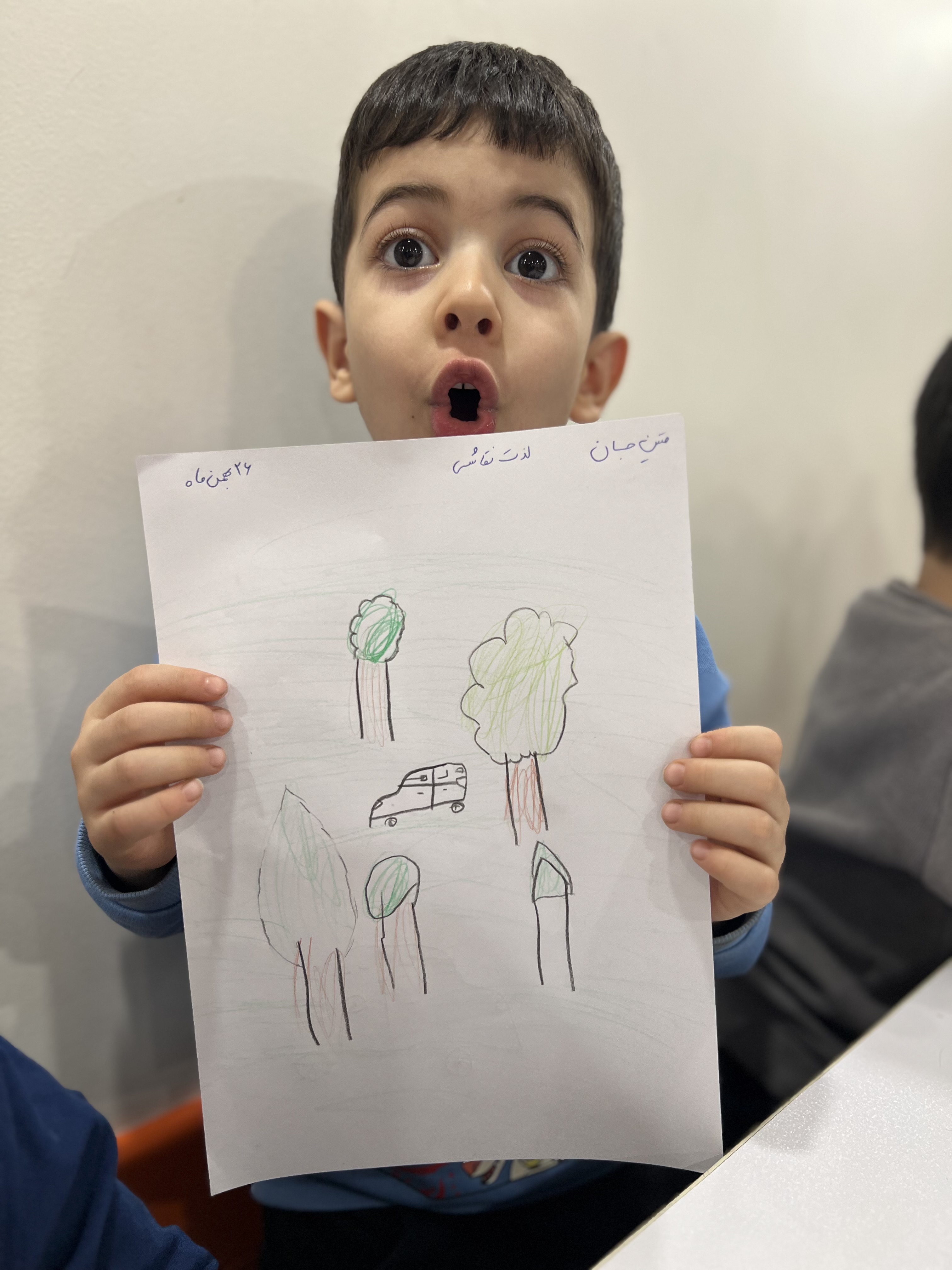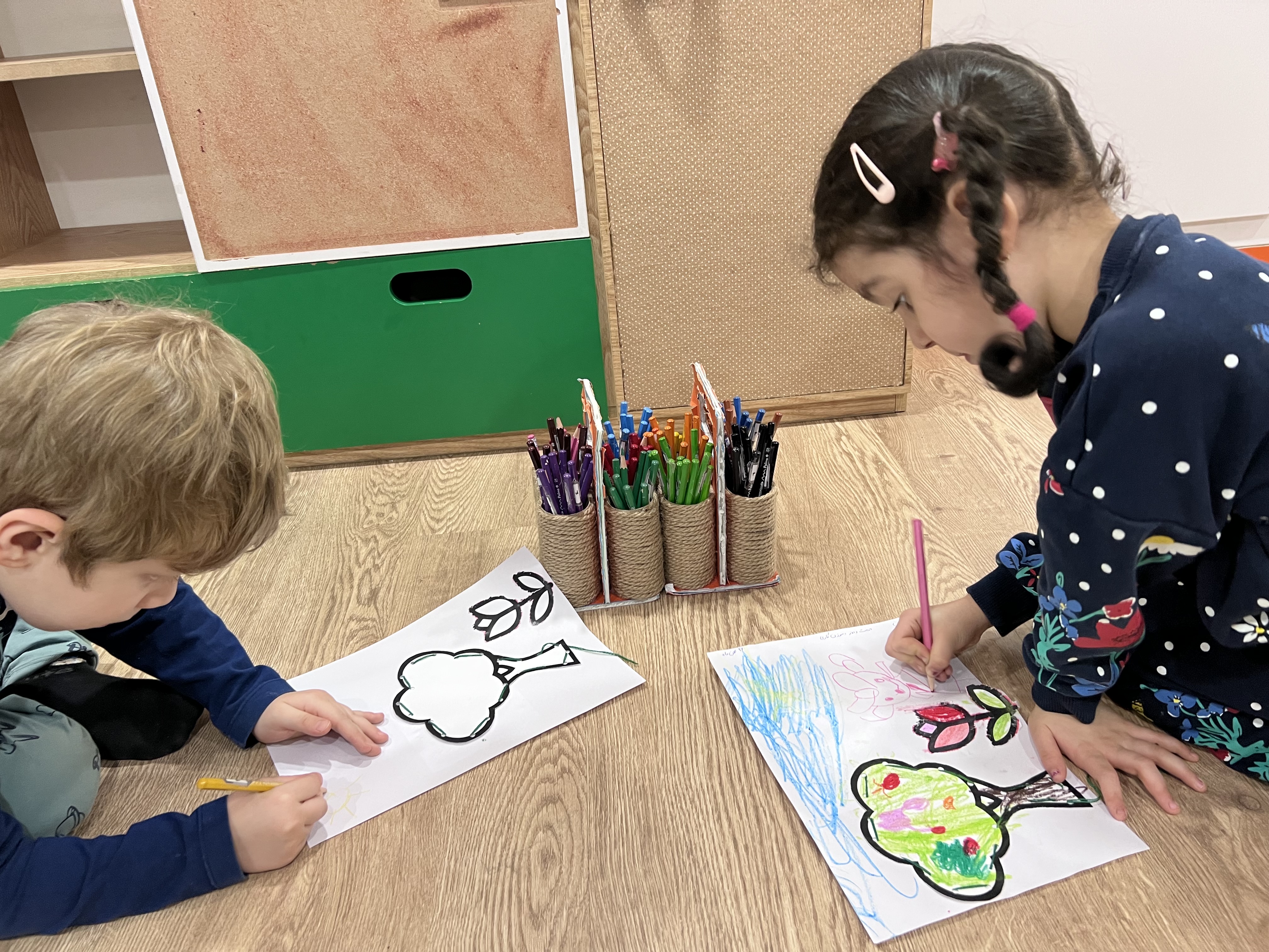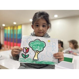 حالا نوبت ایستگاه لذت نقاشی هستش و انواع مختلف درخت رو باهم کشیدیم🌳🌴🌲