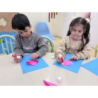 حالا نوبت ایستگاه اوریگامی هستش و گل کاغذیمون رو باهم دیگه درست کردیم و کلاژ کریدم