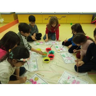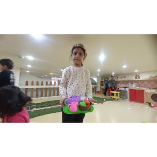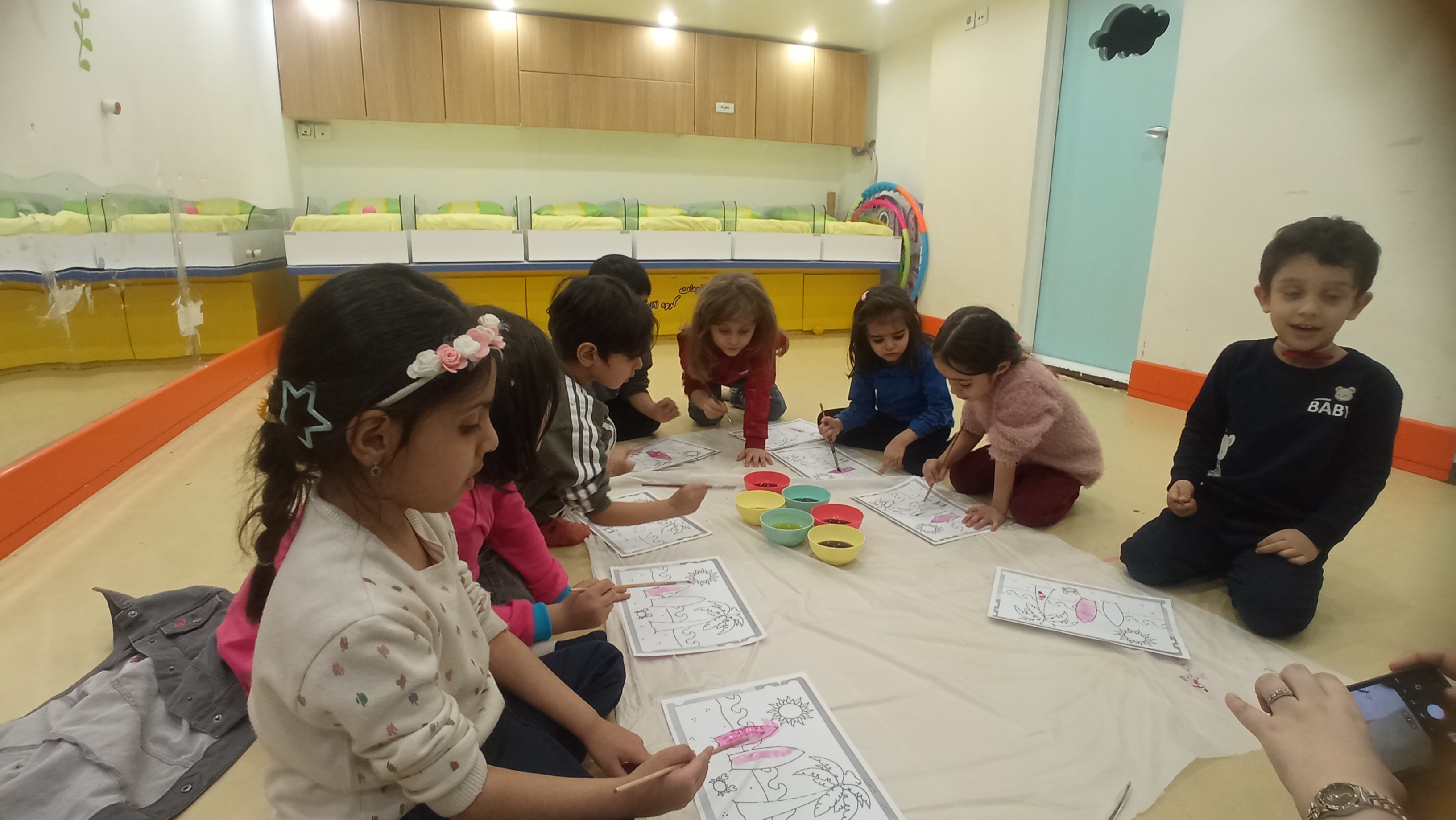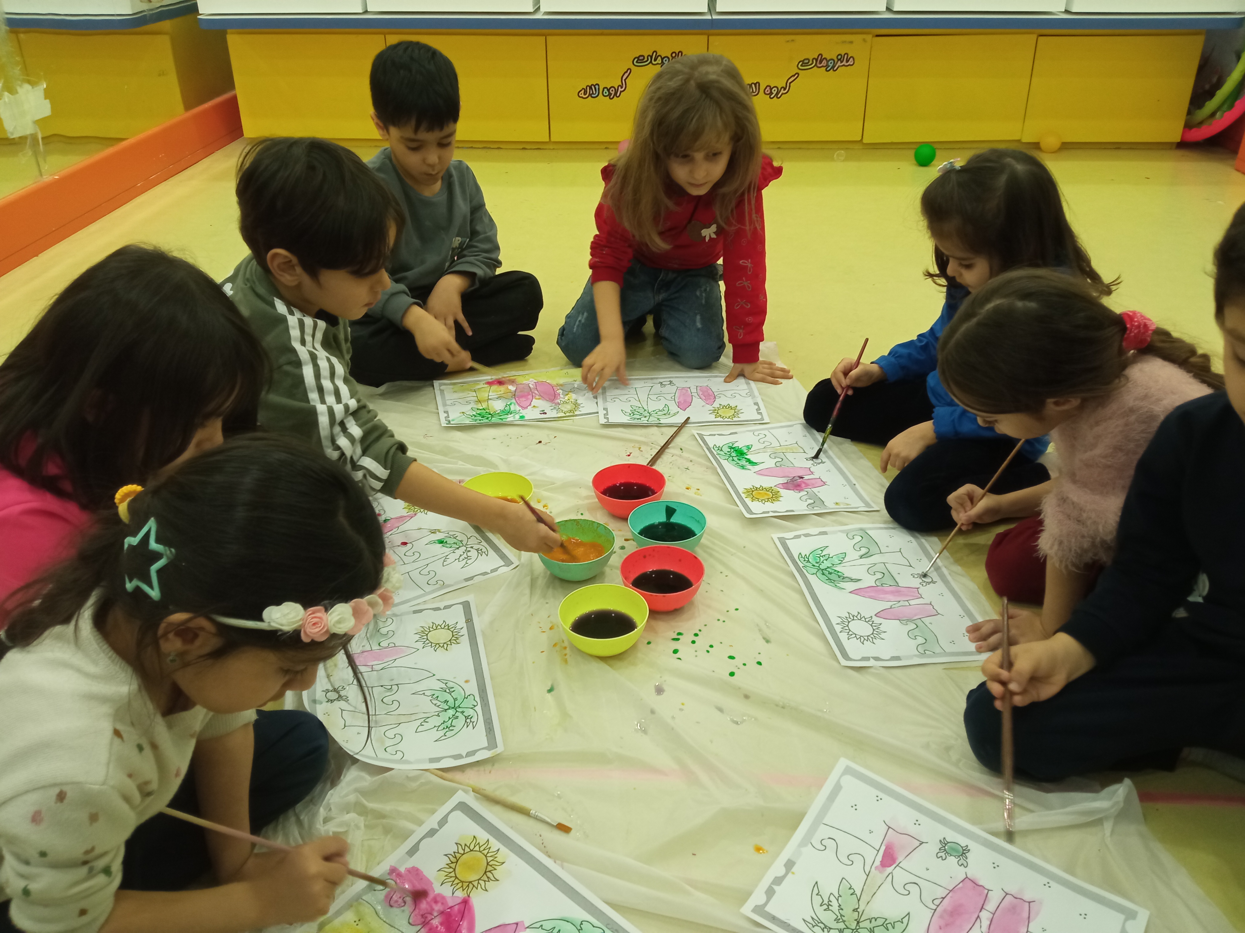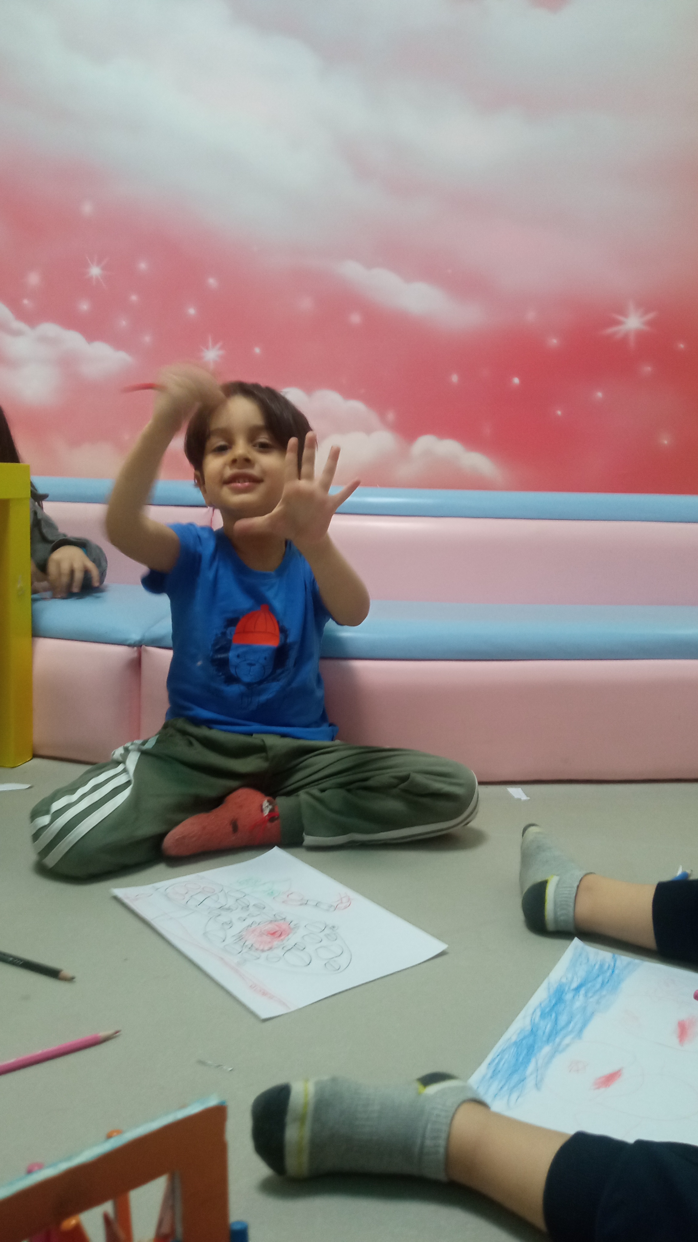 بعد از بازی وقت کلاس دنیای رنگ بود که بچه ها با رنگ های طبیعی رنگ آمیزی انجام دادند😁