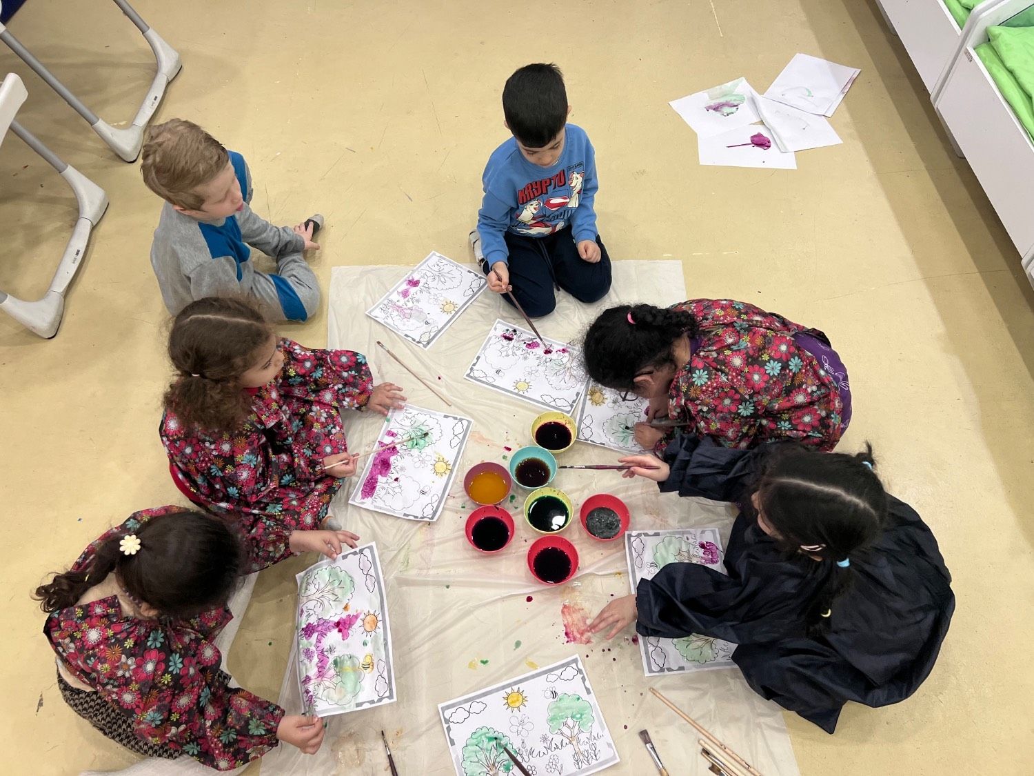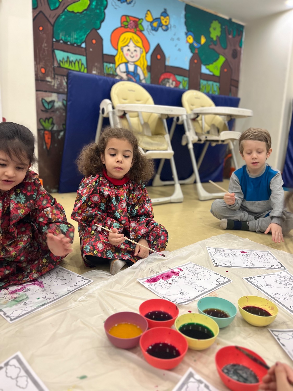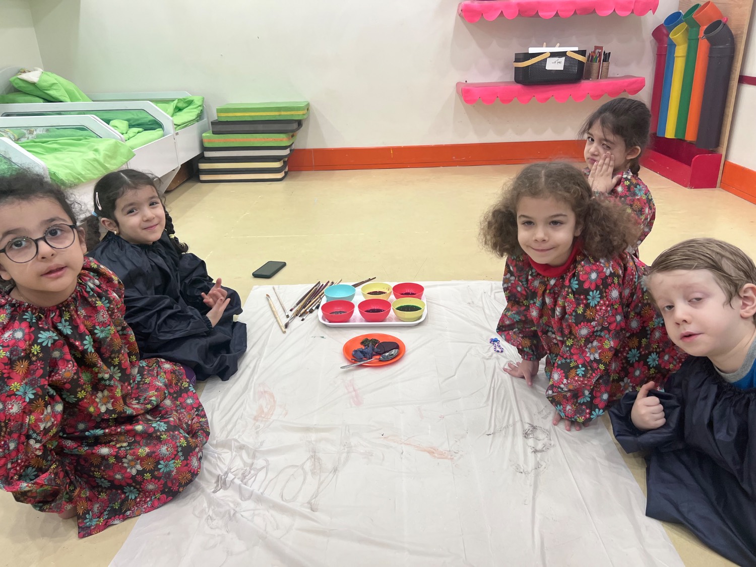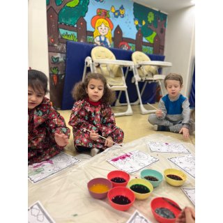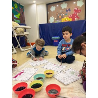 بعدش دنیای رنگ داشتیم:رنگ آمیزی با رنگ های طبیعی ( آب لبو، آب کلم قرمز،چای،آب زرد چوبه، آب اسفناج).😍