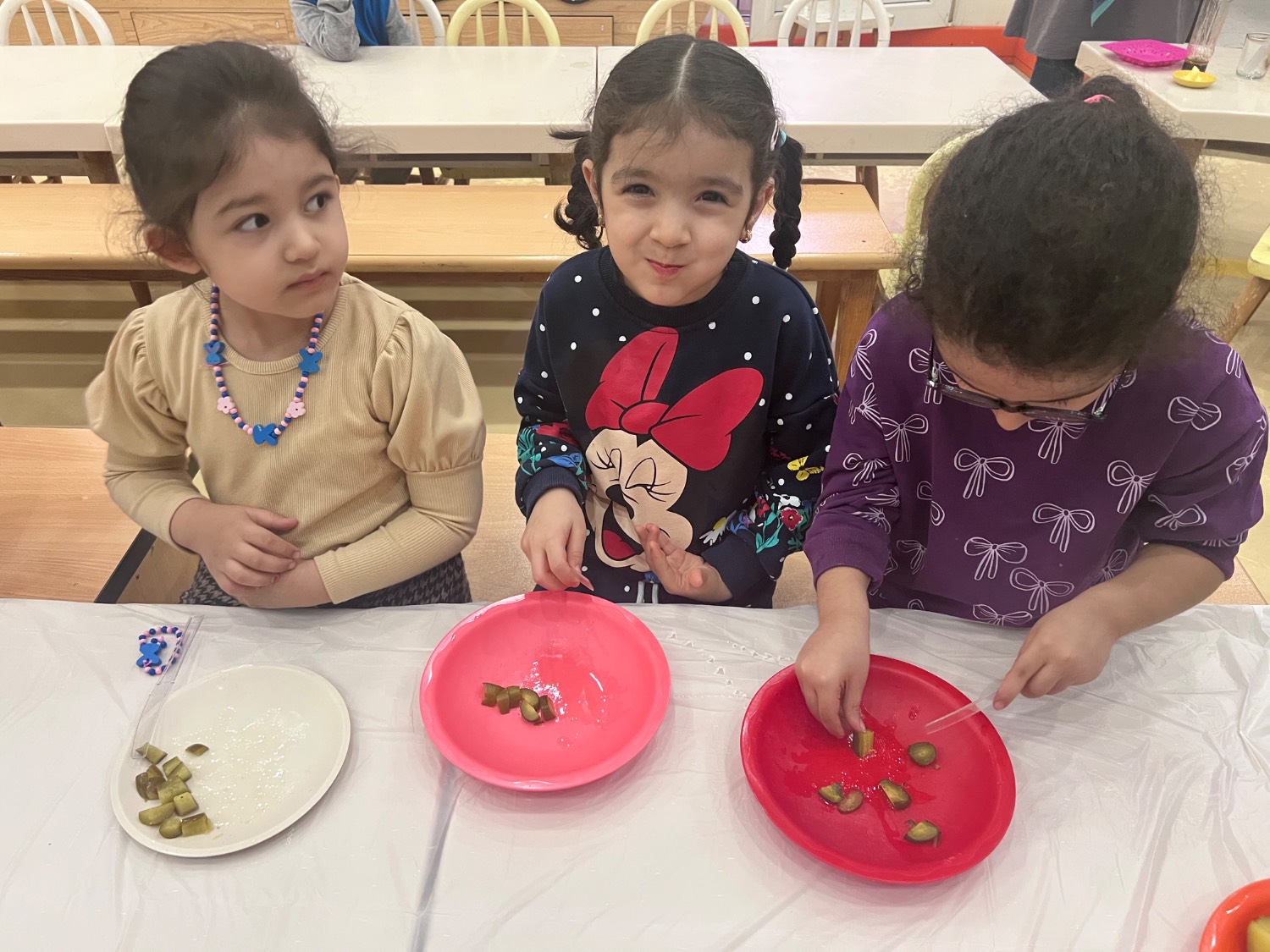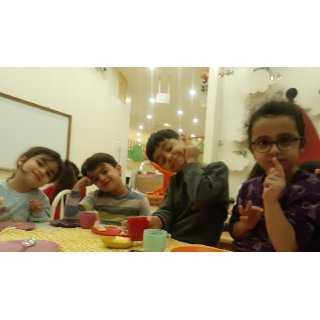 وقت میان وعده مون رسید و بچه ها دست پخت خودشون (سالاد ماکارونی ) میل کردند 😊