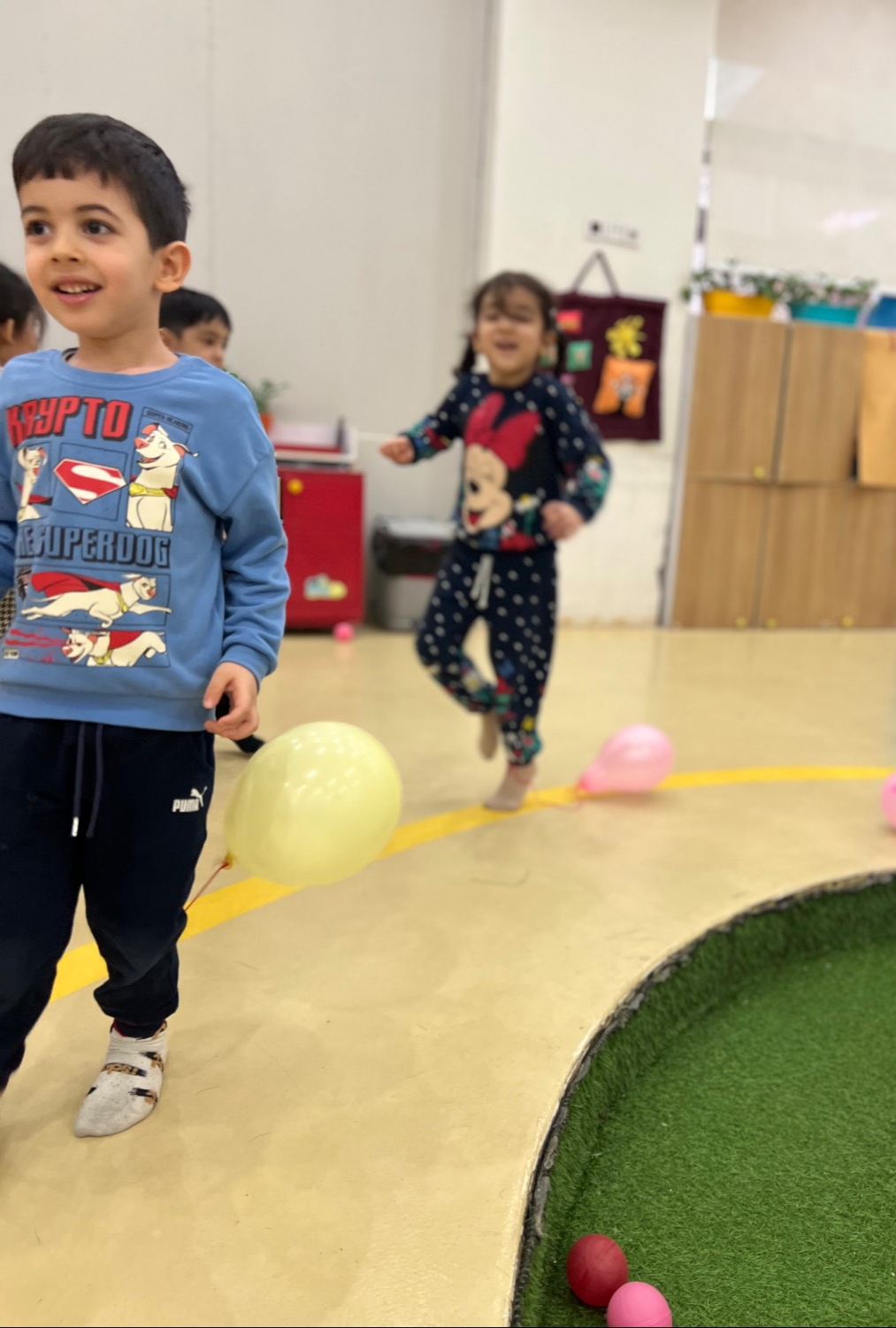 بادکنک بازی: بازی با بادکنک داشتیم 🎈🎈🎈 بستن بادکنک به مچ پا خواستیم که بادکنک هم دیگه رو بترکونند و به دنبال هم افتاده بودند😂😂