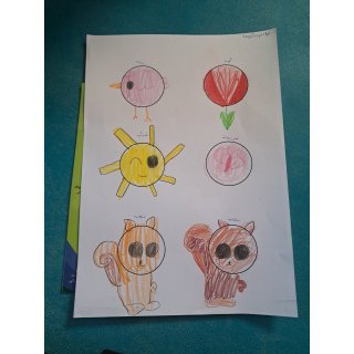 و سپس پیش خاله نادره عزیز رفتیم و به ساخت داستان و تمرین نمایش پرداختیم و بعد ناهار خوشمزه ای که مامان زحمت کشیده بودند را میل کردیم ودر آخر داستان خواندیم و شکل های بامزه ای ساختیم📙