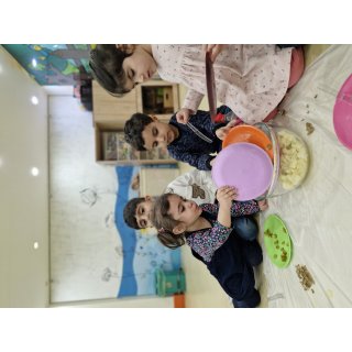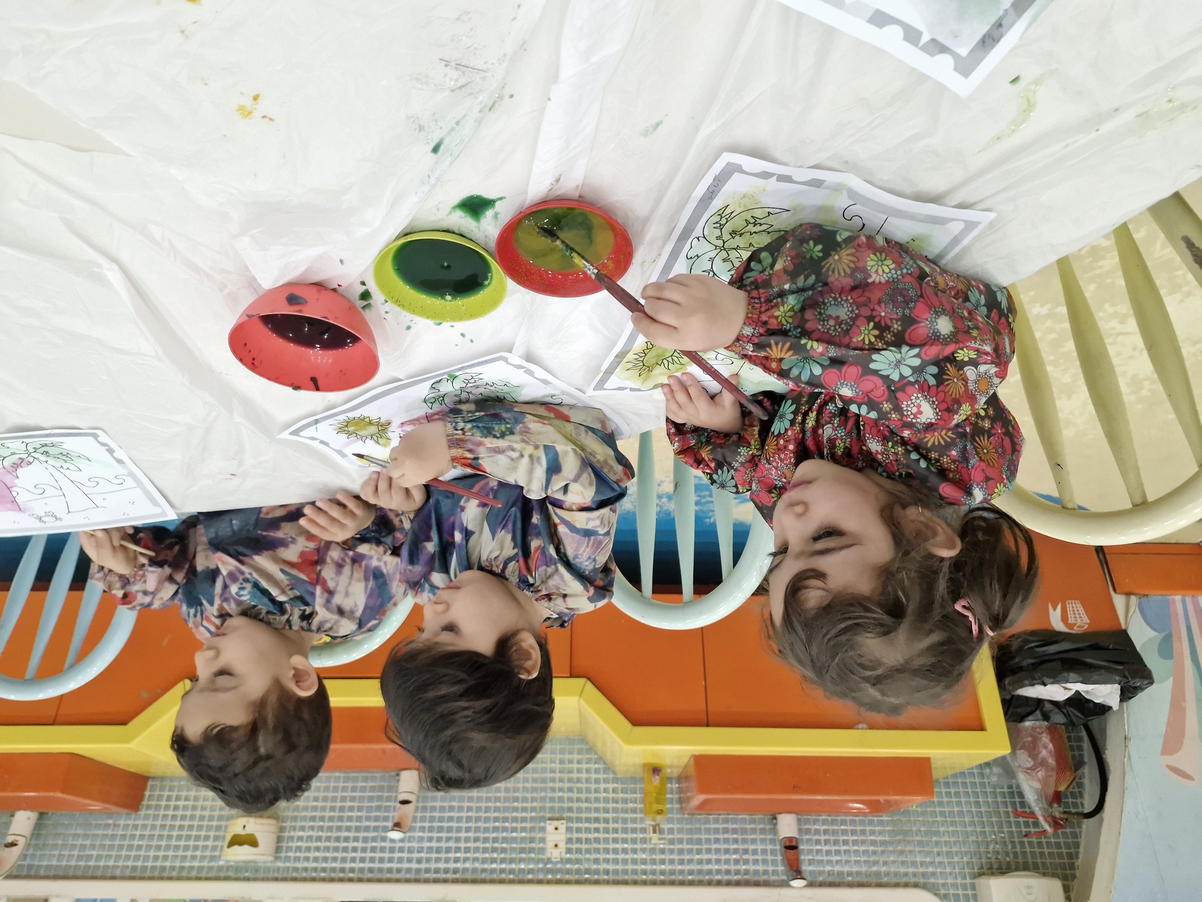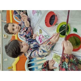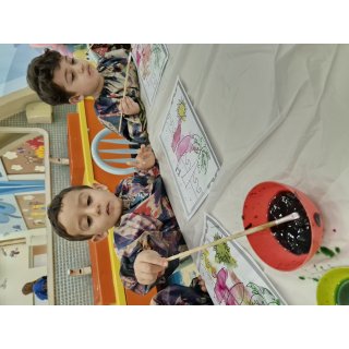 بعدش کلاس دنیای رنگ ها رو داشتیم با خاله فاطمه مهربون با آب لبو و آب کلم رنگ آمیزی کردیم.🖌🎨🖌
