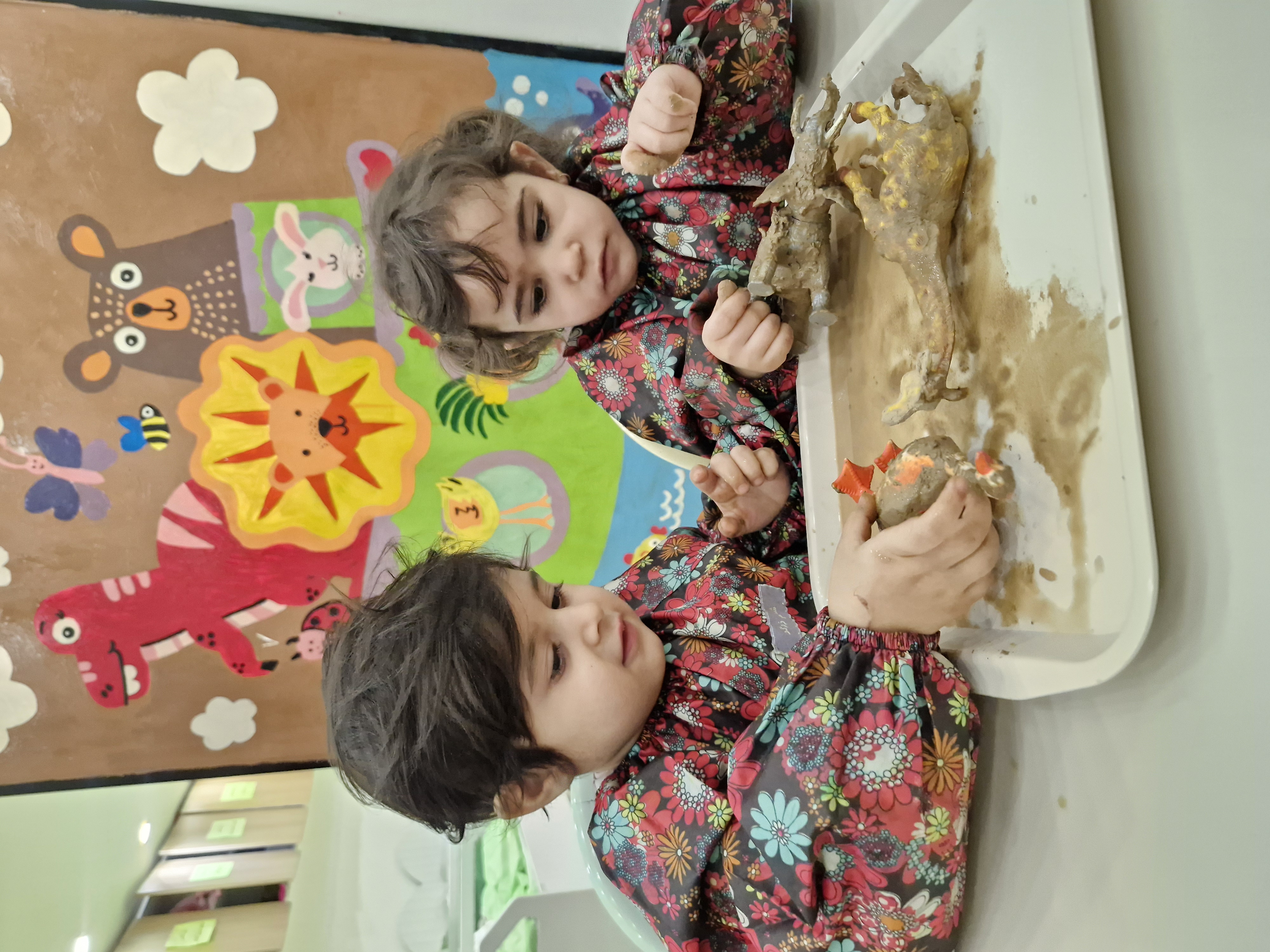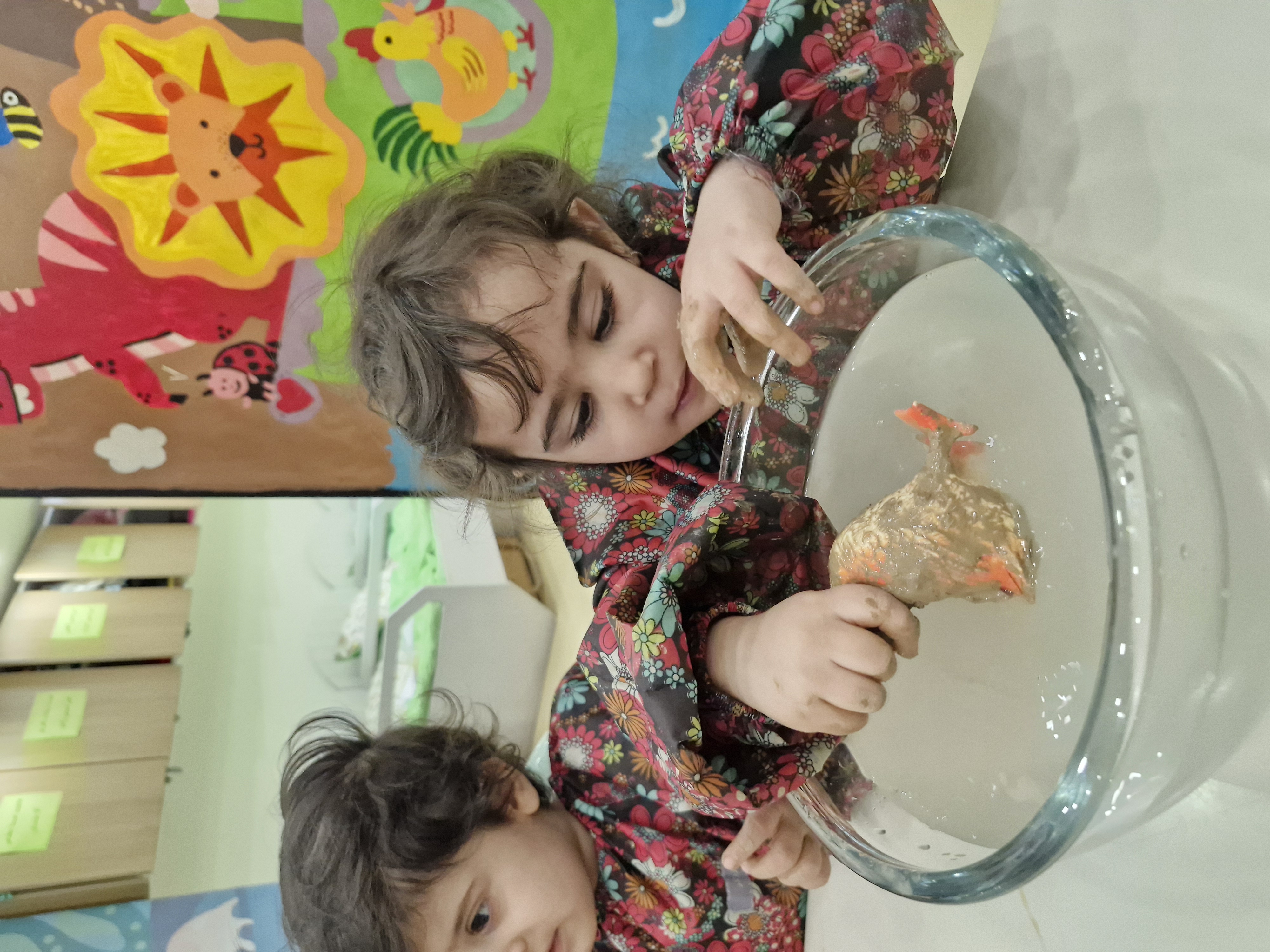 بعد از اون رفتیم فعالیت شستن حیوانات که با گِل کثیف شده بودن با آب تمیزشون کردیم.🐑🐥🐢🐰🐄