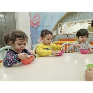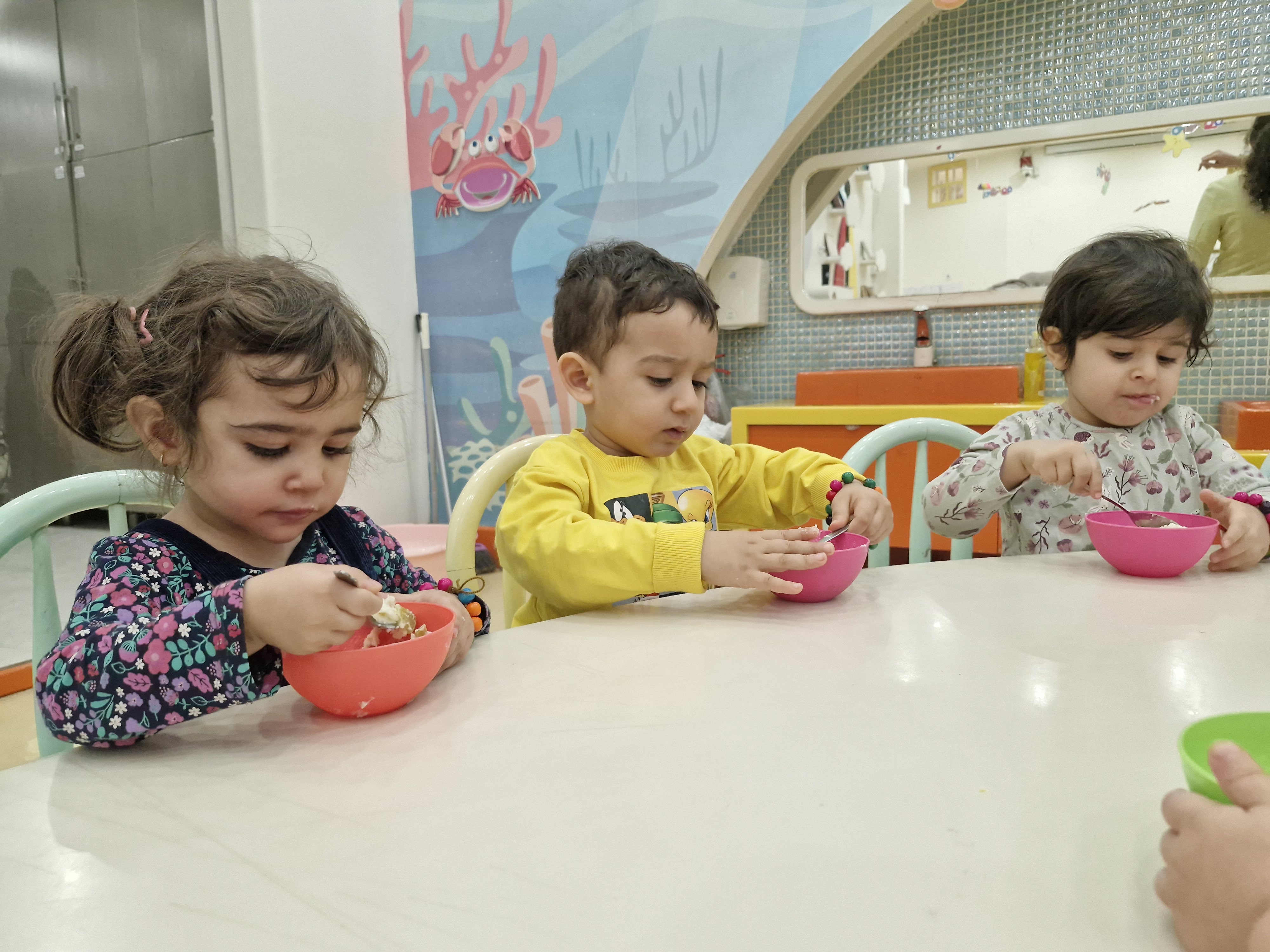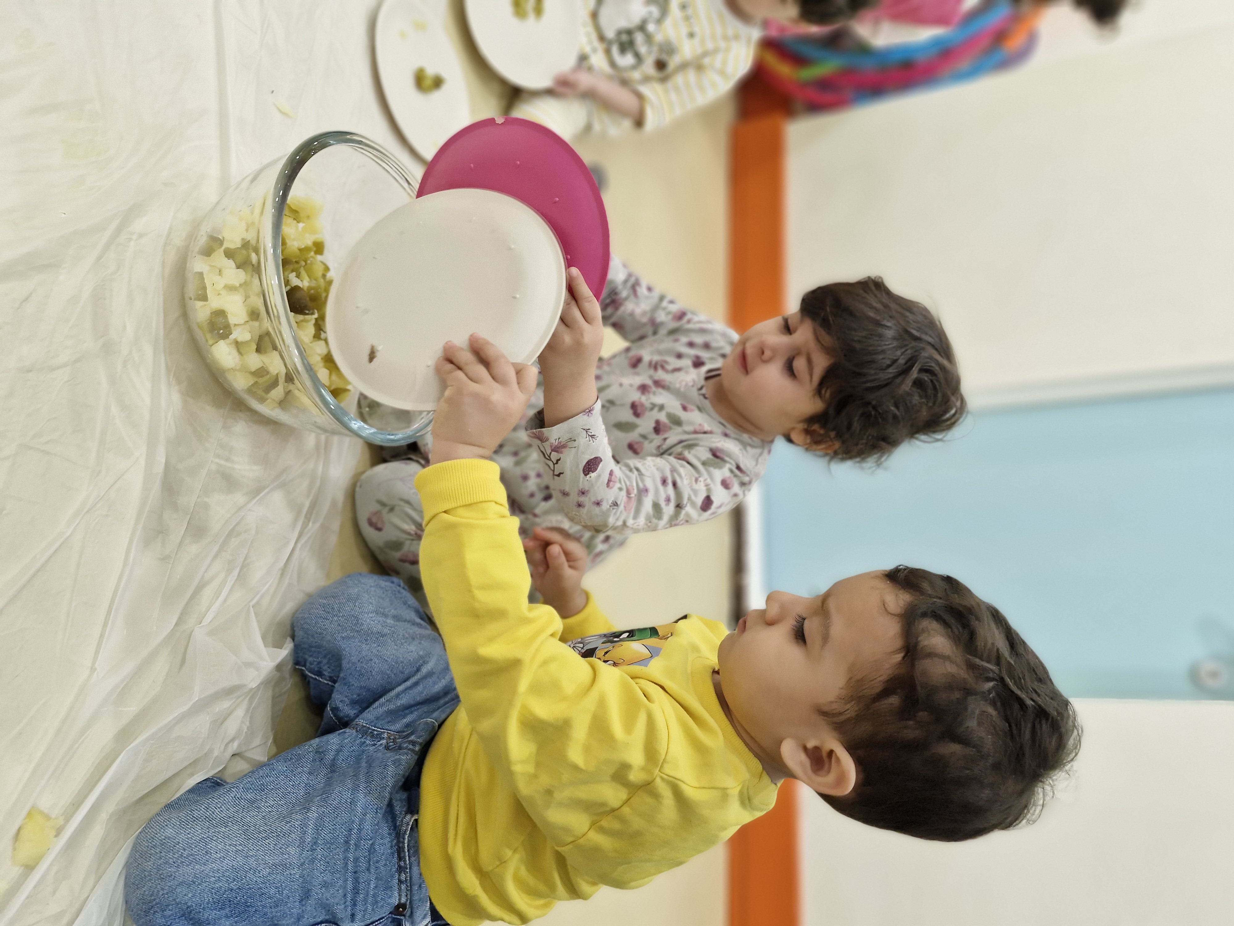 بعد از اون کلاس آشپزی داشتیم با آشپز کوچولوهامون رفتیم سیب زمینی و خیار شور مرغ پخته شده را خورد کردیم،بعدش ماکارانی هارو قاطی کردیم سس اضافه کردیم یه سالاد ماکارانی خوشمزه آماده کردیم.🥔🥒