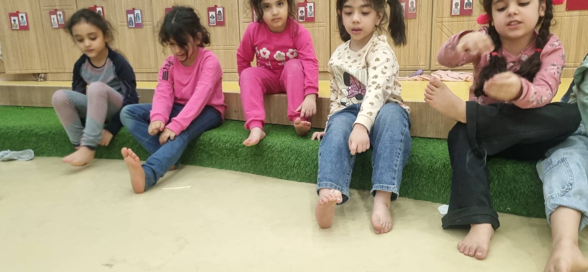 در ادامه پروژههای امروزمون یک فعالیت حرکتی هیجان انگیز انجام دادیم ، جهت تقویت عضلات پا و حساسیت زداییها🦵👣