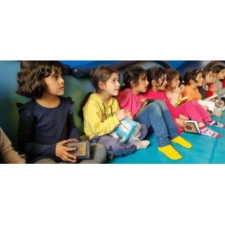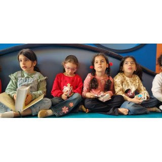 بعد از نهار خاله برامون کتاب فاصلهات را با من حفظ کن رو خوند و ازمون خواست تا هرچیزی رو از داستان متوجه شدیم برای دوستانمون تعریف کنیم و خوشبختانه همه به خوبی براش تعریف کردیم 🎤
